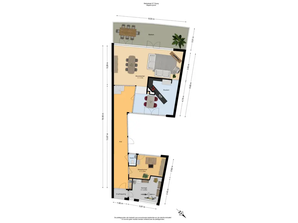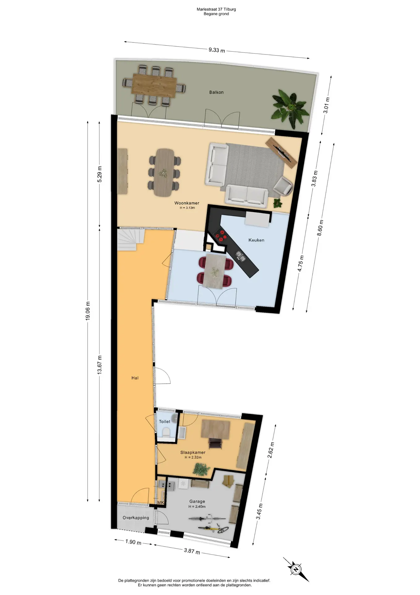 Op de begane grond bevinden zich de gang, berging, slaap-/werkkamer, toiletruimte, woonkeuken en woonkamer.
