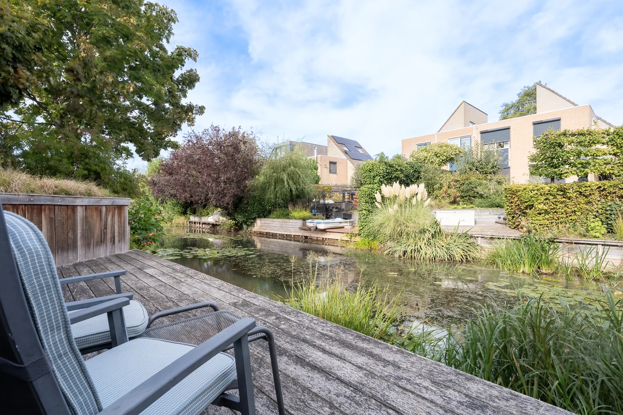 Als kers op de taart is de prachtig aangelegde tuin te bereiken via de schuifpui. De tuin is ideaal gelegen en ook nog eens direct aan de waterloop, die in open verbinding staat met de Asterdplas, waar het in het voorjaar en de zomer heerlijk recreëren is op het water. Leg je bootje aan bij je eigen houten terras aan het water en vaar zo de plas op. De tuin is verder goed aangelegd met een mix van bestrating, bomen en beplanting. Er is ook een wateraansluiting aanwezig. Door al het groen in de tuin en de vrije ligging heb je bovendien ook nog eens volledige privacy.