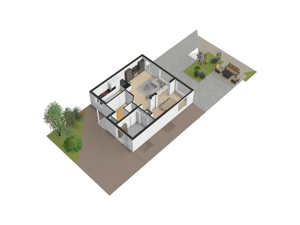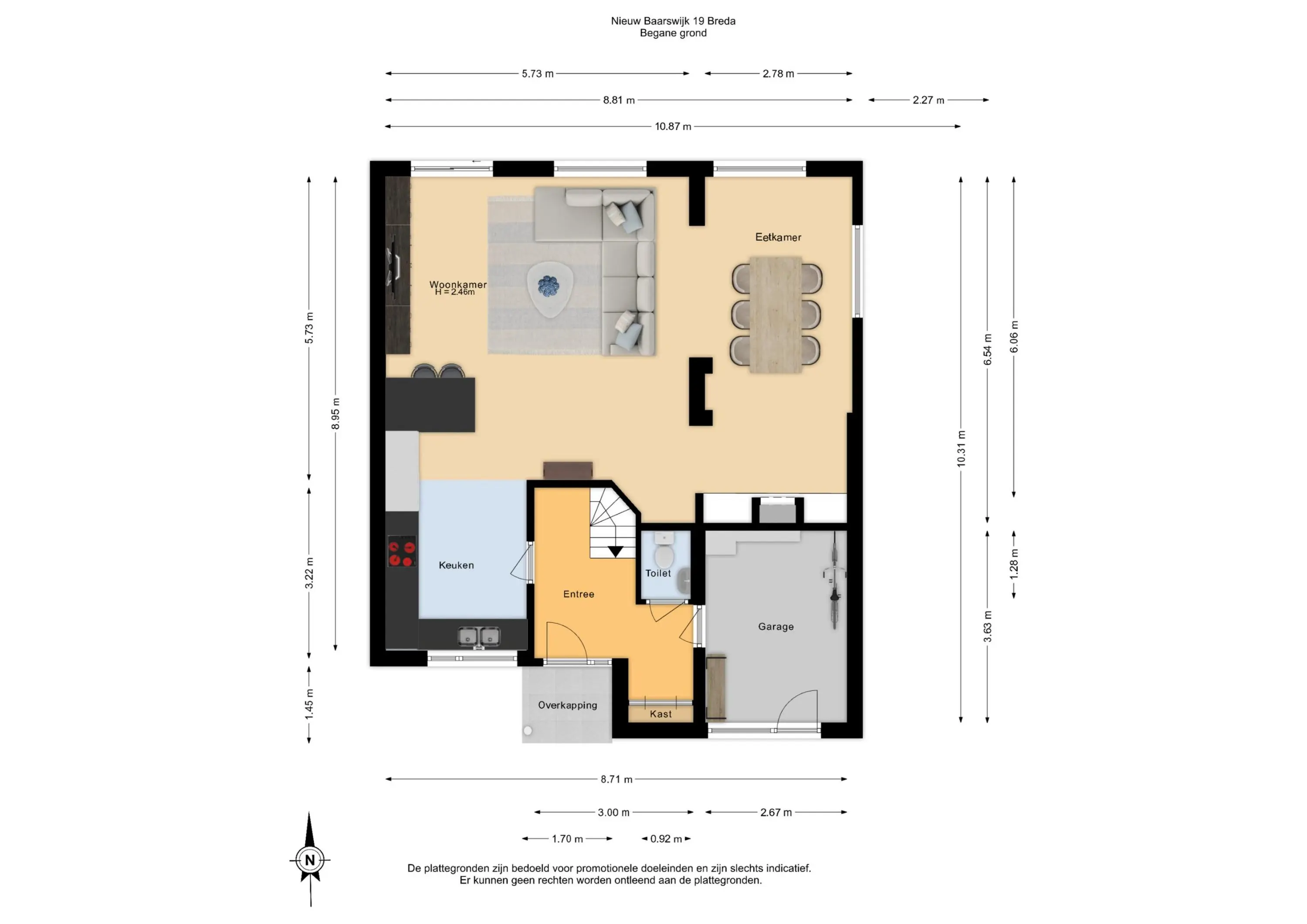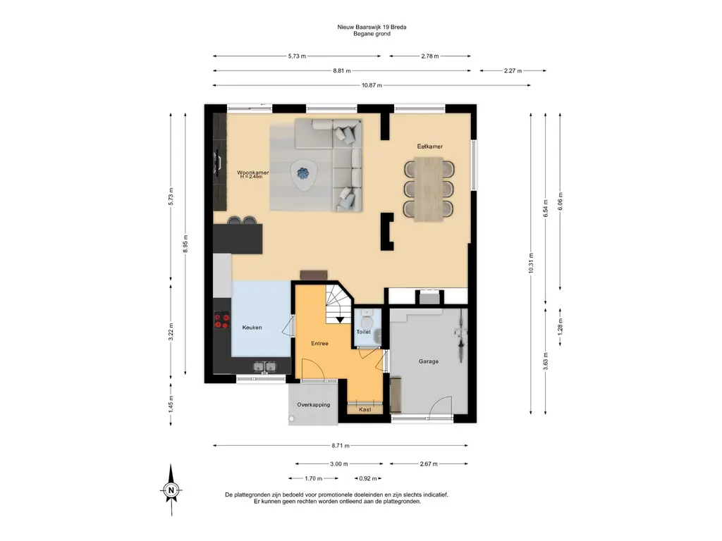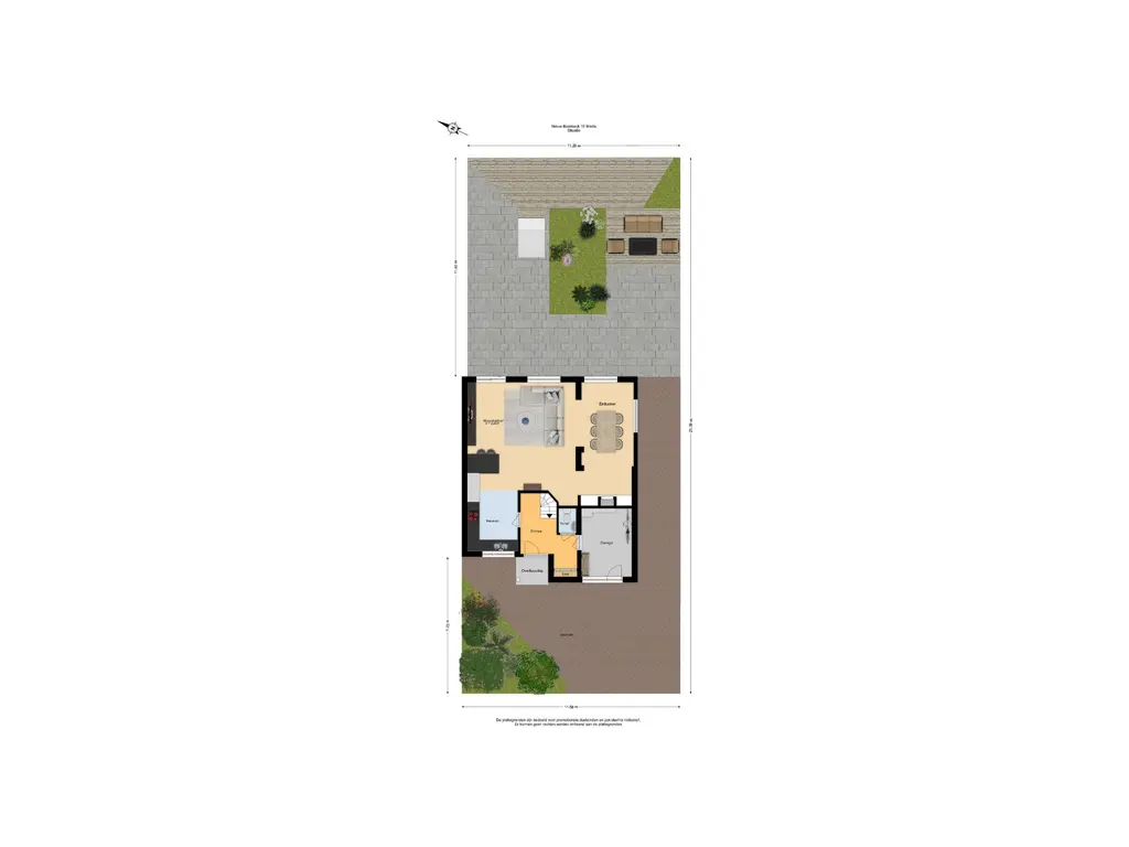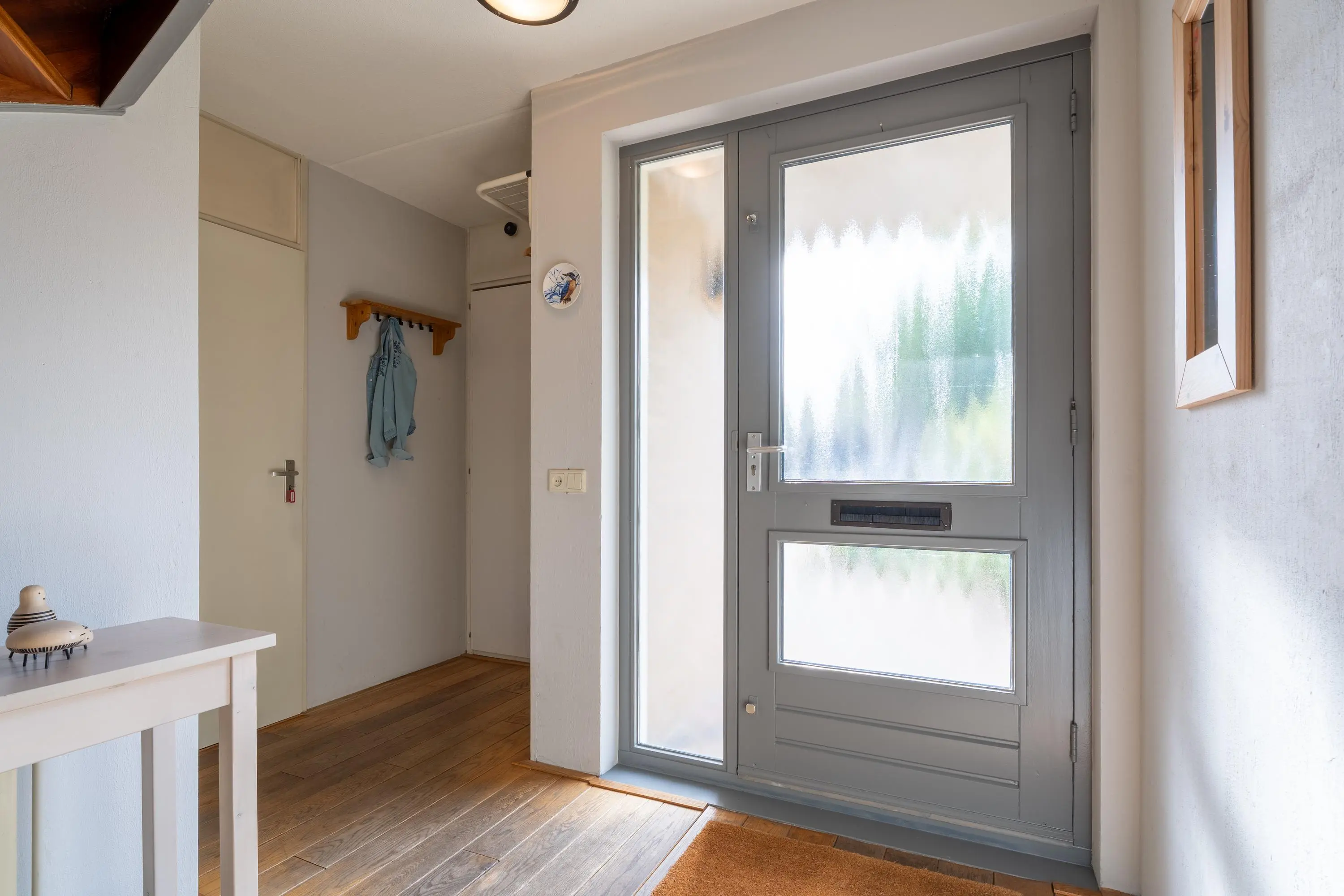 Via de voortuin en de eigen oprit kom je bij de entree van de woning. De ruime hal geeft toegang tot de inpandige berging, de woonkamer en de keuken. In de hal zelf is de meterkast en de opstelplaats voor de warmtewisselaar van de stadsverwarming, het toilet en de trapopgang naar de eerste verdieping aanwezig.
