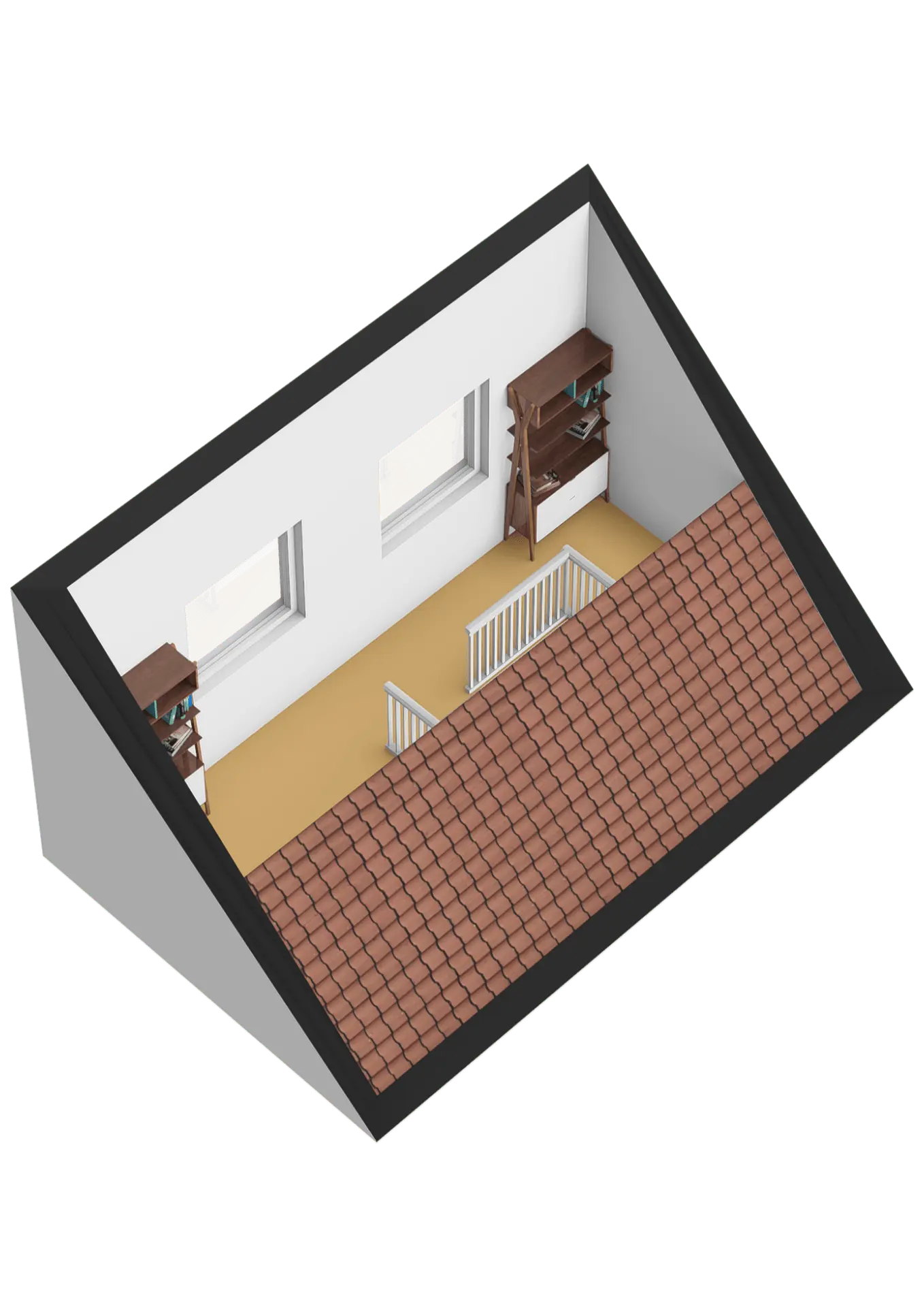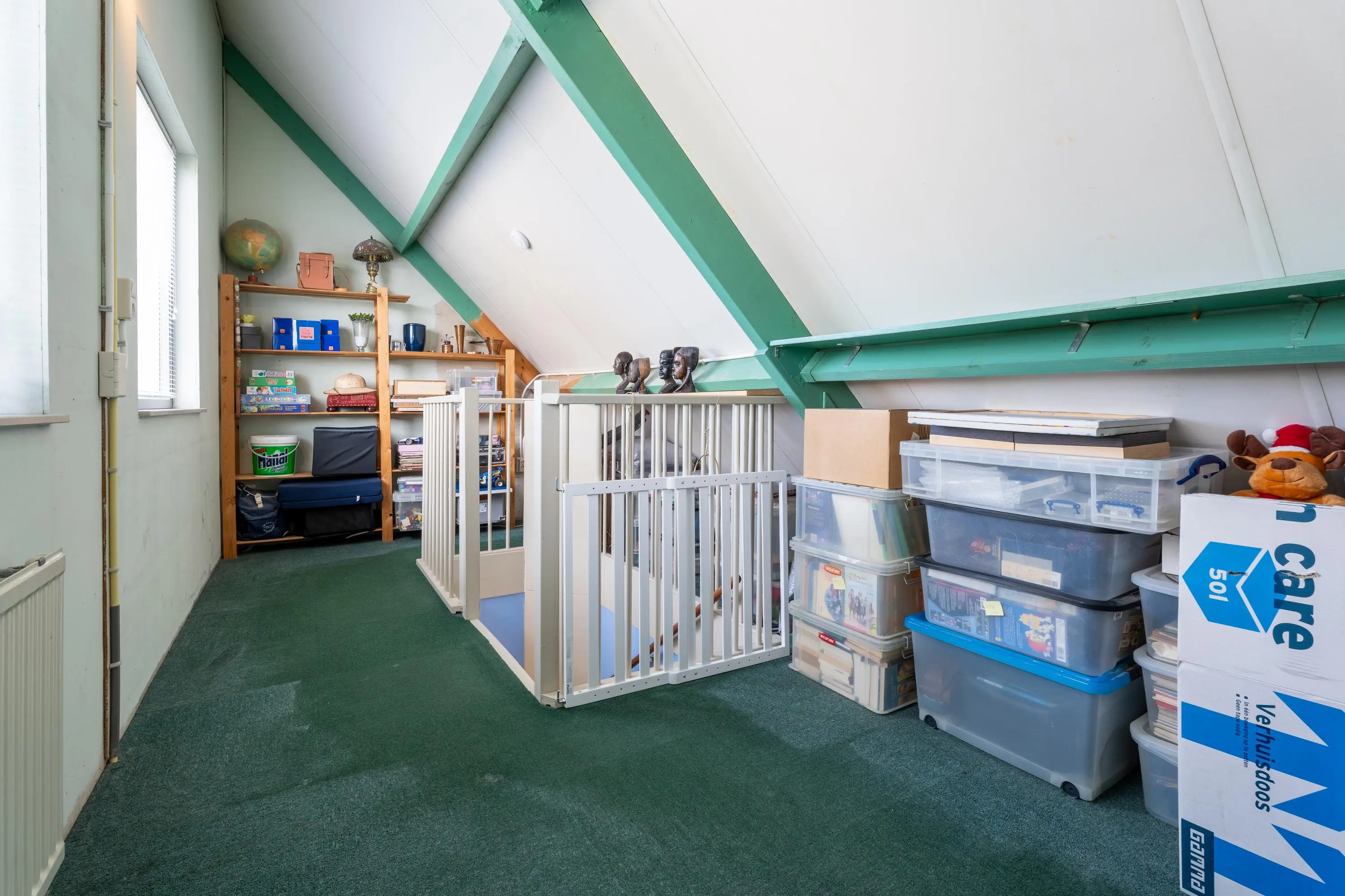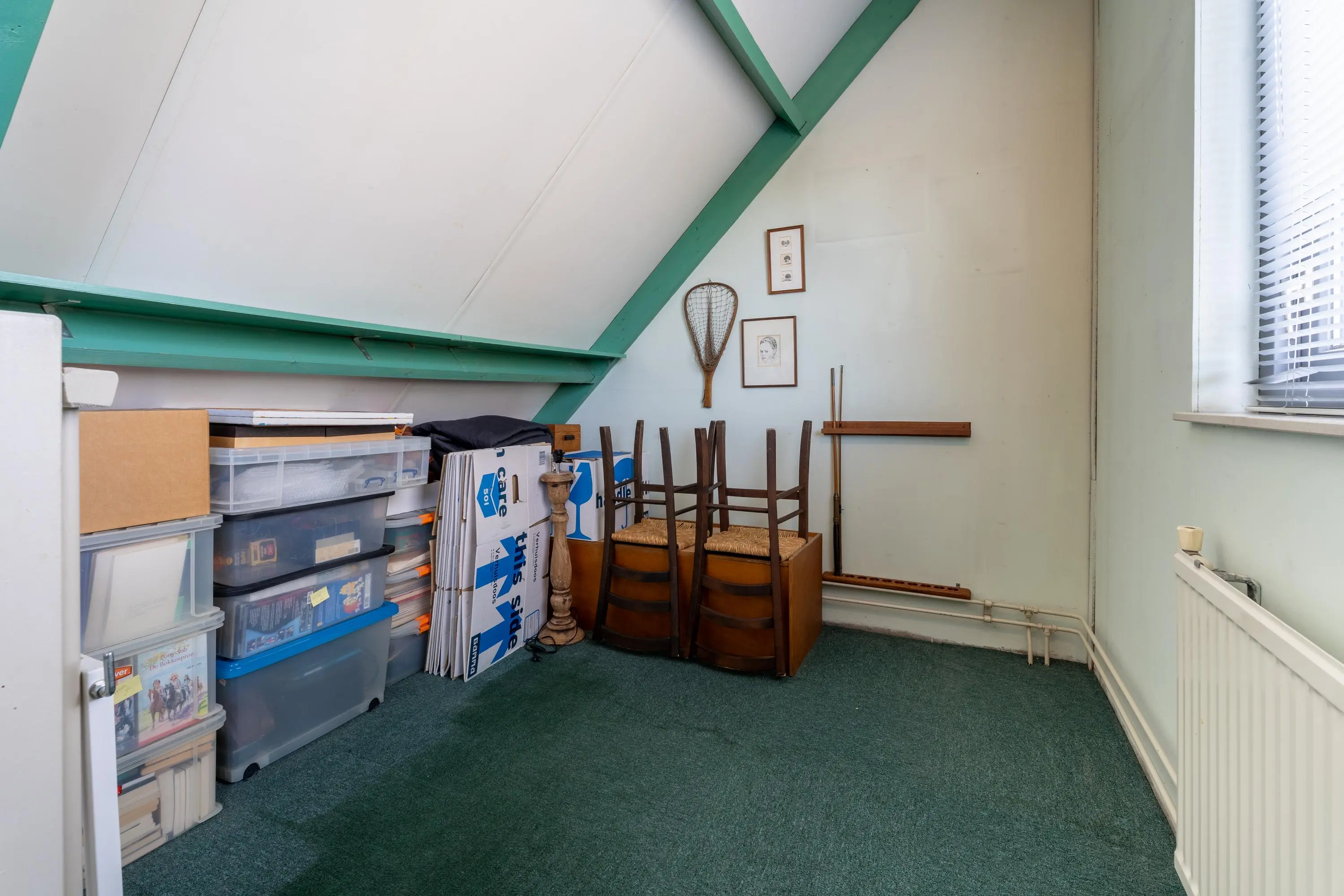De tweede verdieping is op verschillende manieren in te delen. Zo kun je er bijvoorbeeld een vijfde slaapkamer van maken en heb je, ondanks de schuine kap, voldoende mogelijkheden om ook nog een aparte studie- of werkruimte te creëren. De kap is voorzien van isolatie en de twee grote ramen maken de ruimte lekker licht.