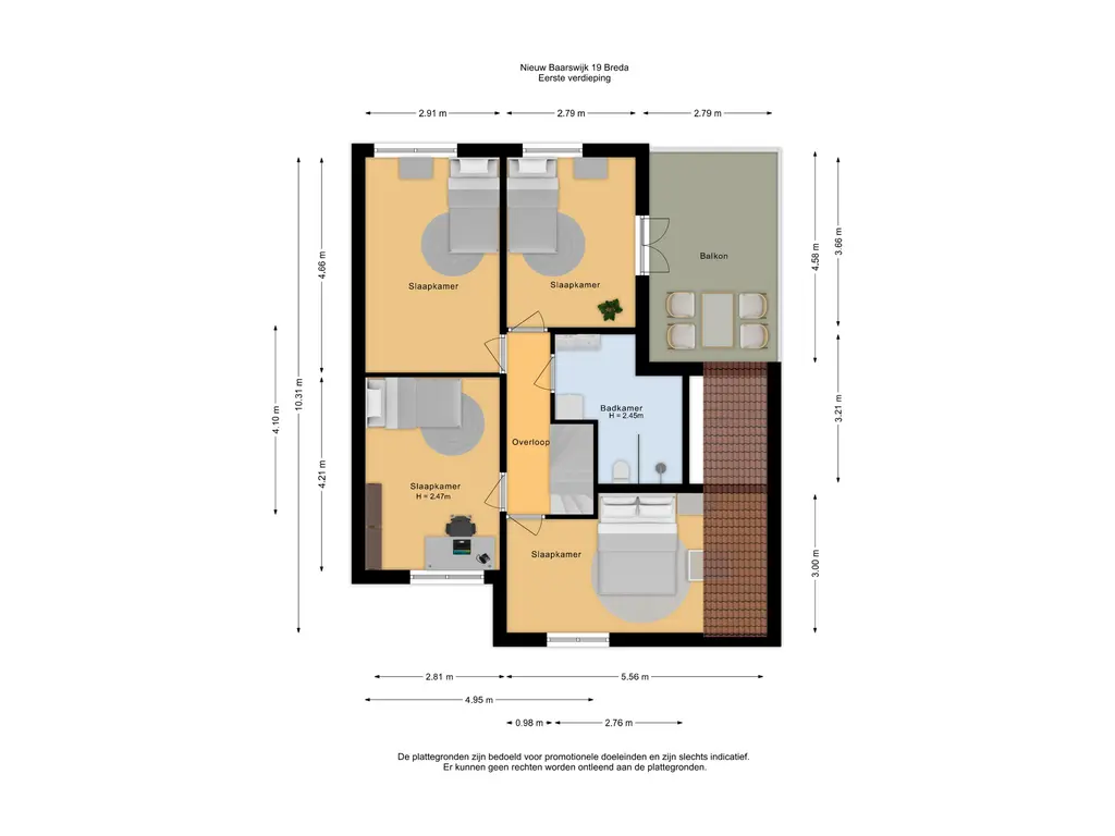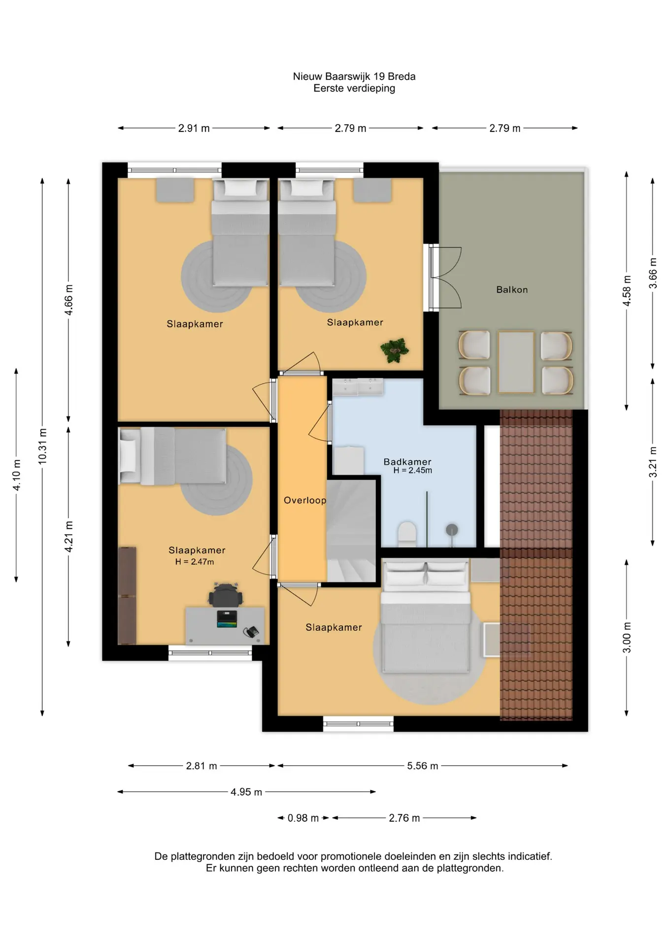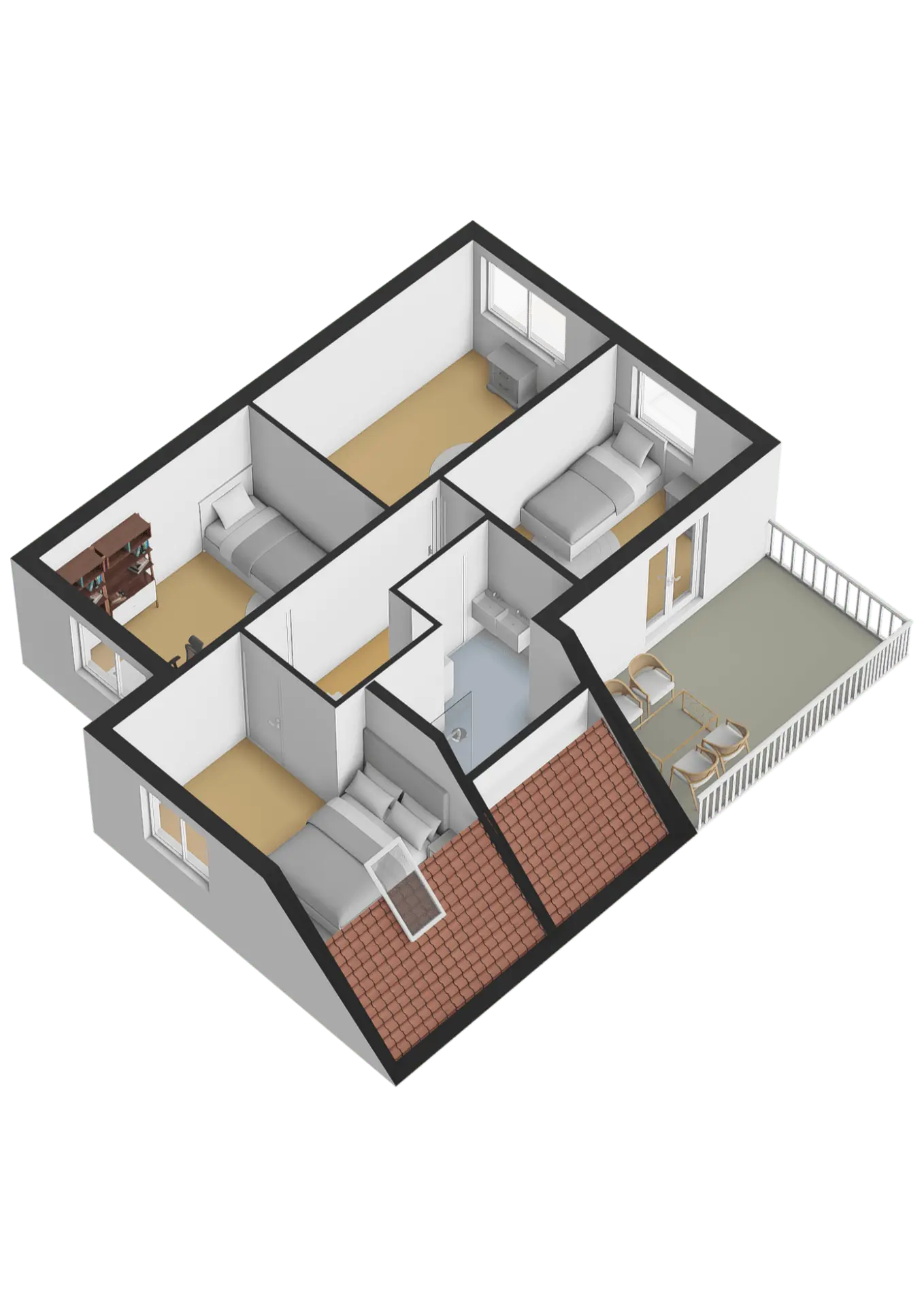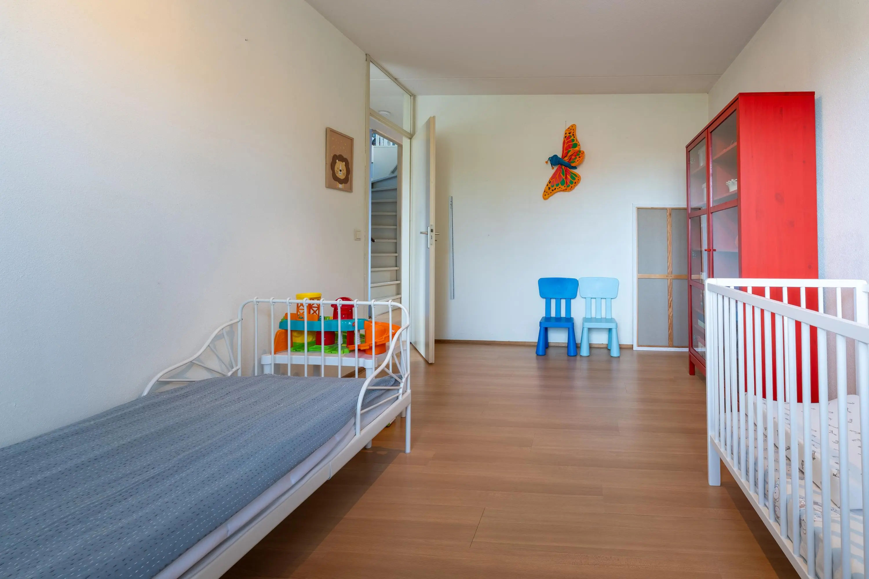 De tweede verdieping is op verschillende manieren in te delen. Zo kun je er bijvoorbeeld een vijfde slaapkamer van maken en heb je, ondanks de schuine kap, voldoende mogelijkheden om ook nog een aparte studie- of werkruimte te creëren. De kap is voorzien van isolatie en de twee grote ramen maken de ruimte lekker licht.