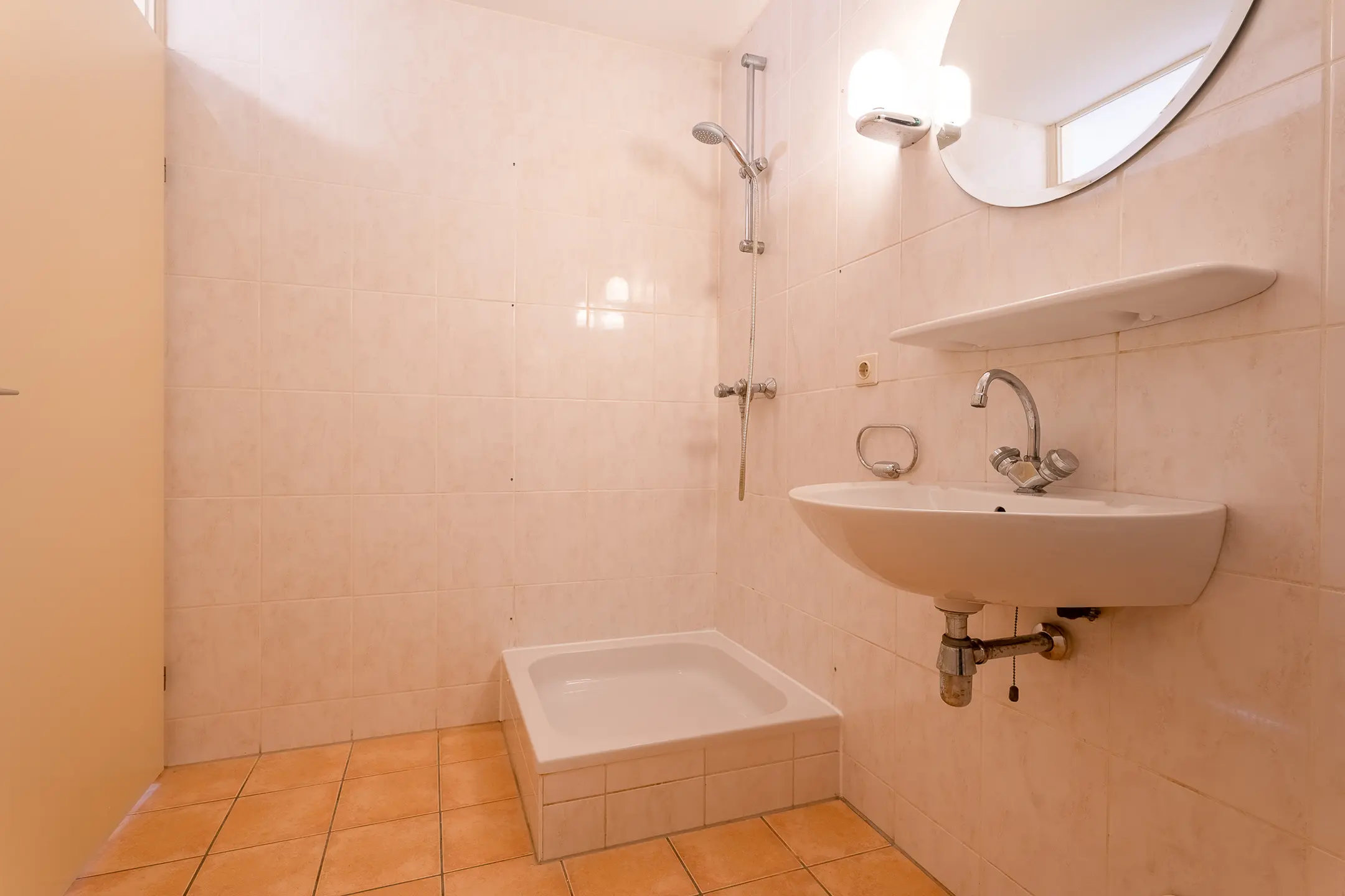 De badkamer is netjes en geheel betegeld. De badkamer is voorzien van een bad, wastafel en douchehoek. Er is een aparte toiletruimte voorzien van een zwevend toilet met fonteintje.
