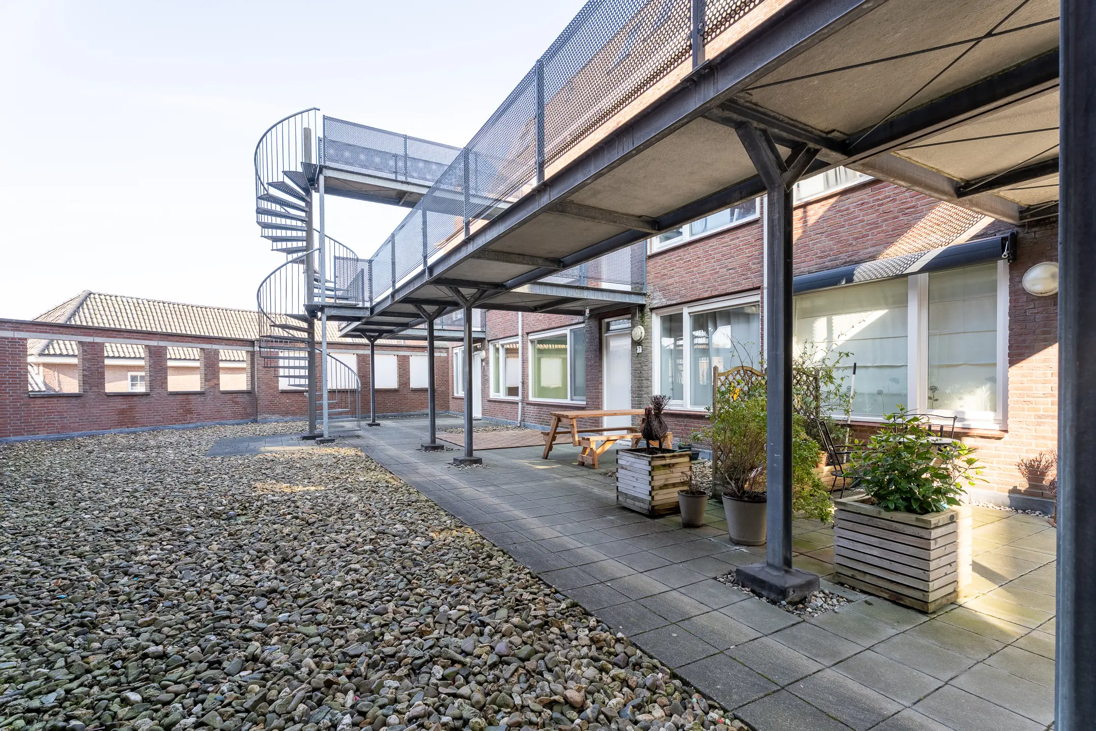 Er is een eigen terras waar je heerlijk kunt genieten van de zon. Aangezien dit een hoek appartement is heb je volop privacy op je terras.