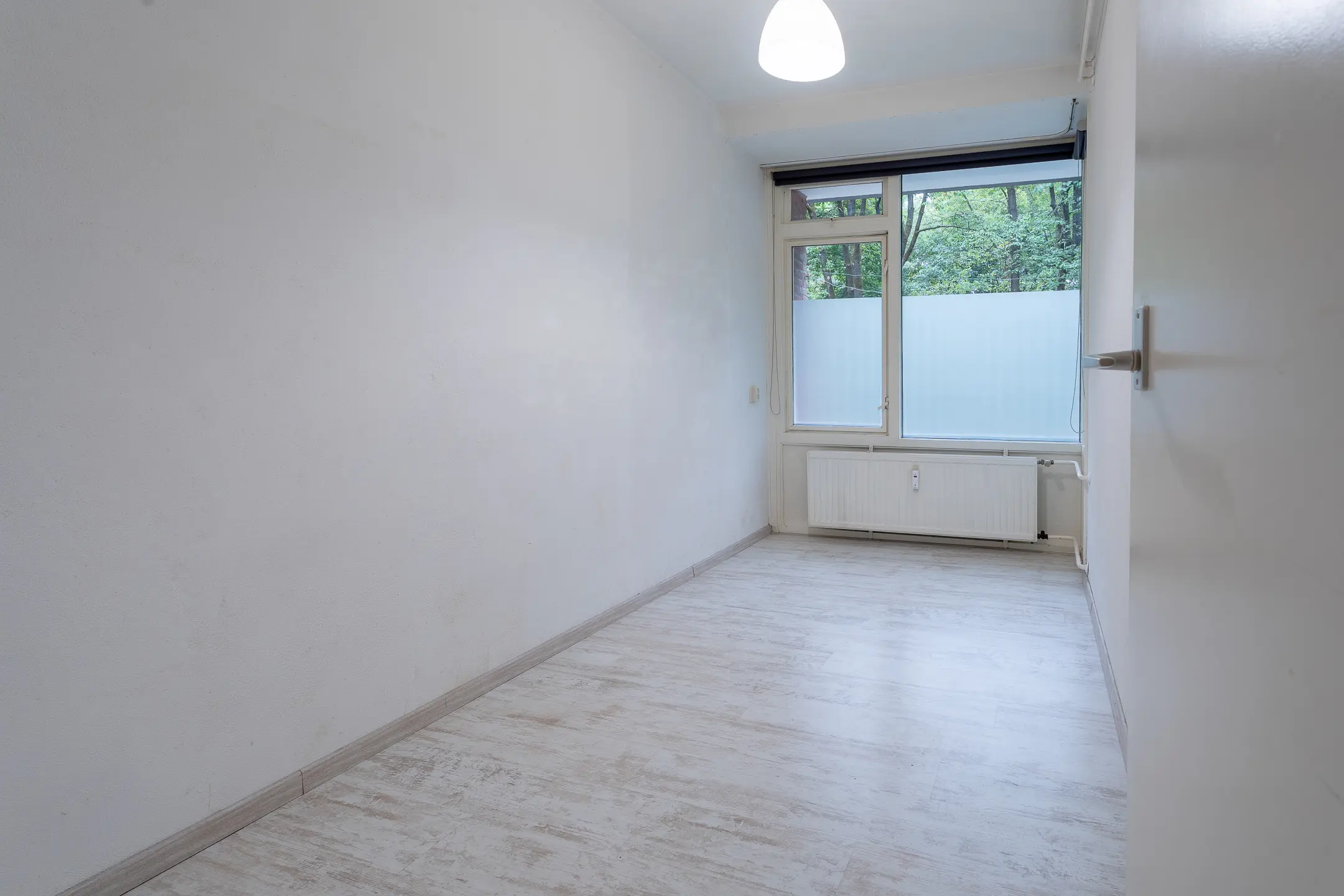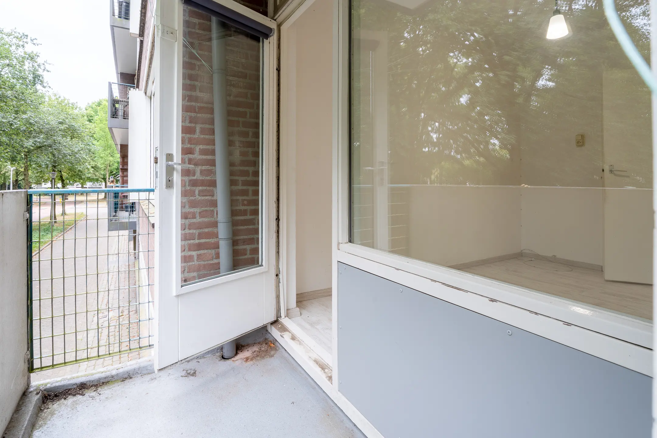 Het appartement beschikt over twee fijne slaapkamers (beide ca. 8m²) met een afwerking gelijk aan die van de woonkamer. Via één van de slaapkamers is het balkon bereikbaar, ca. 4m² groot, met een mooi uitzicht op de groene omgeving.
