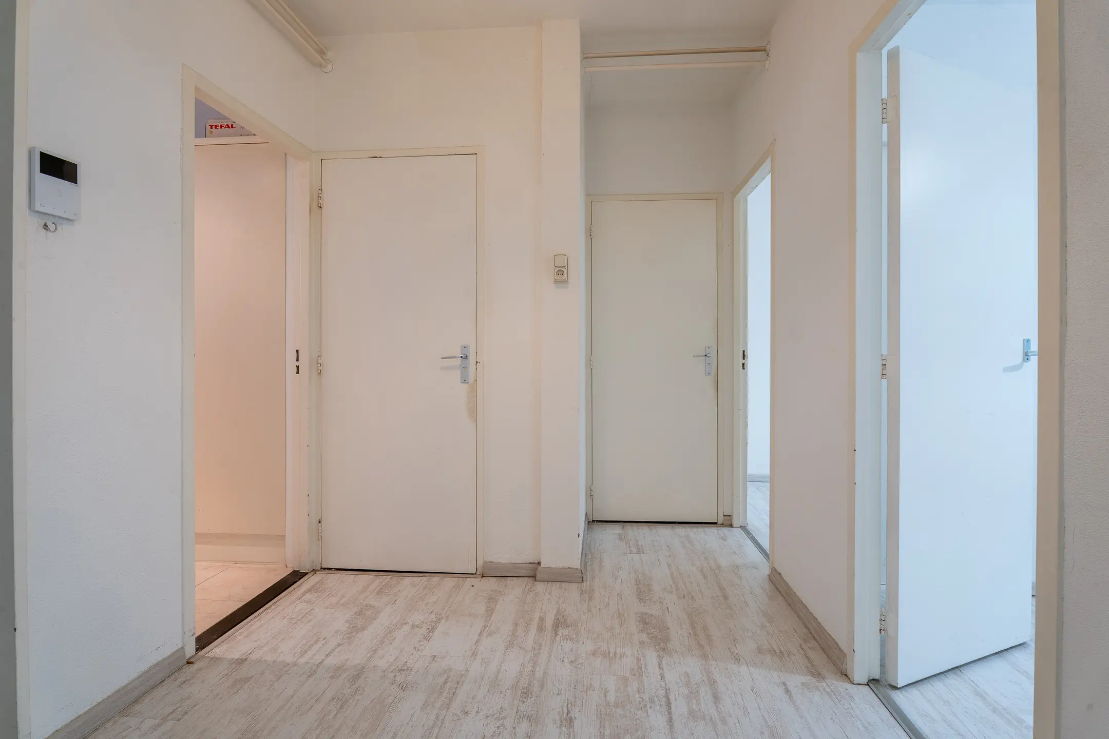 Via de hal betreed je het appartement en vanuit de hal zijn ook alle vertrekken van het appartement toegankelijk.