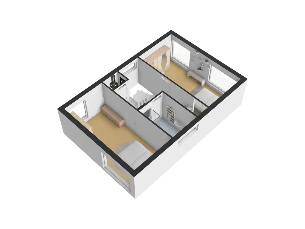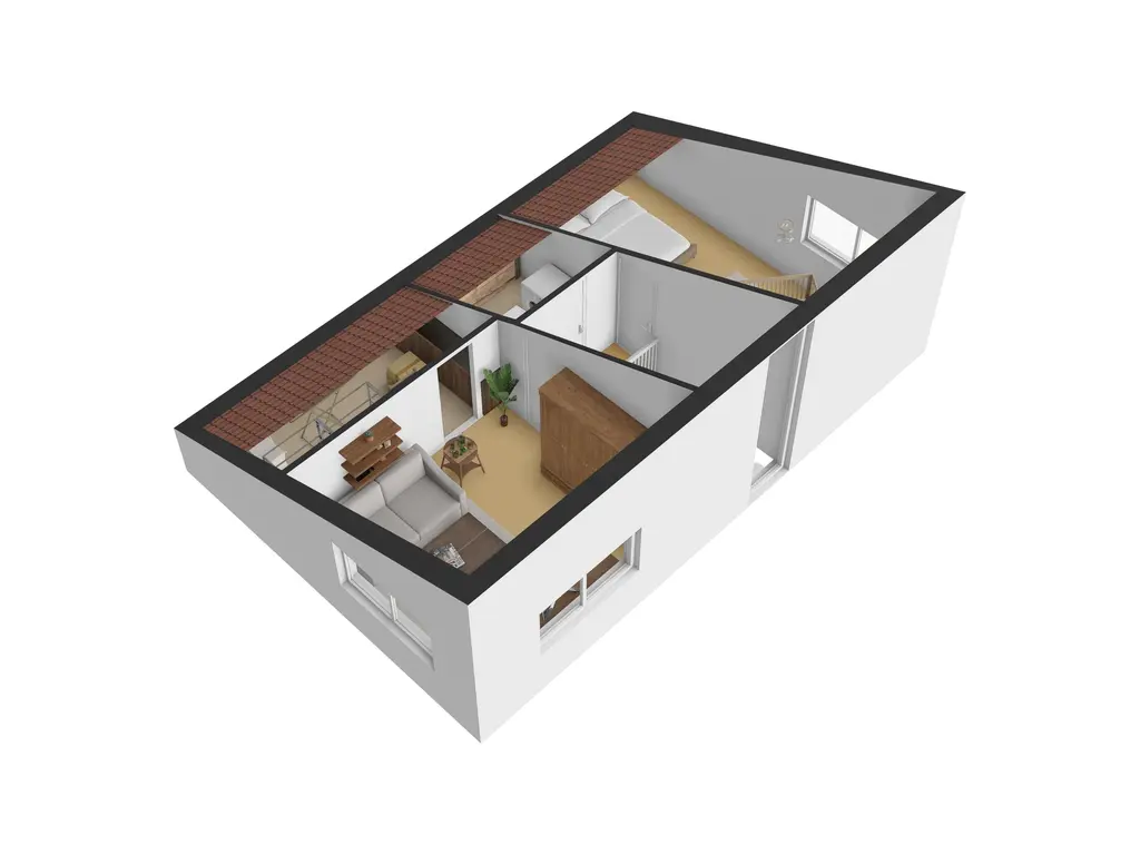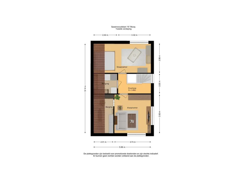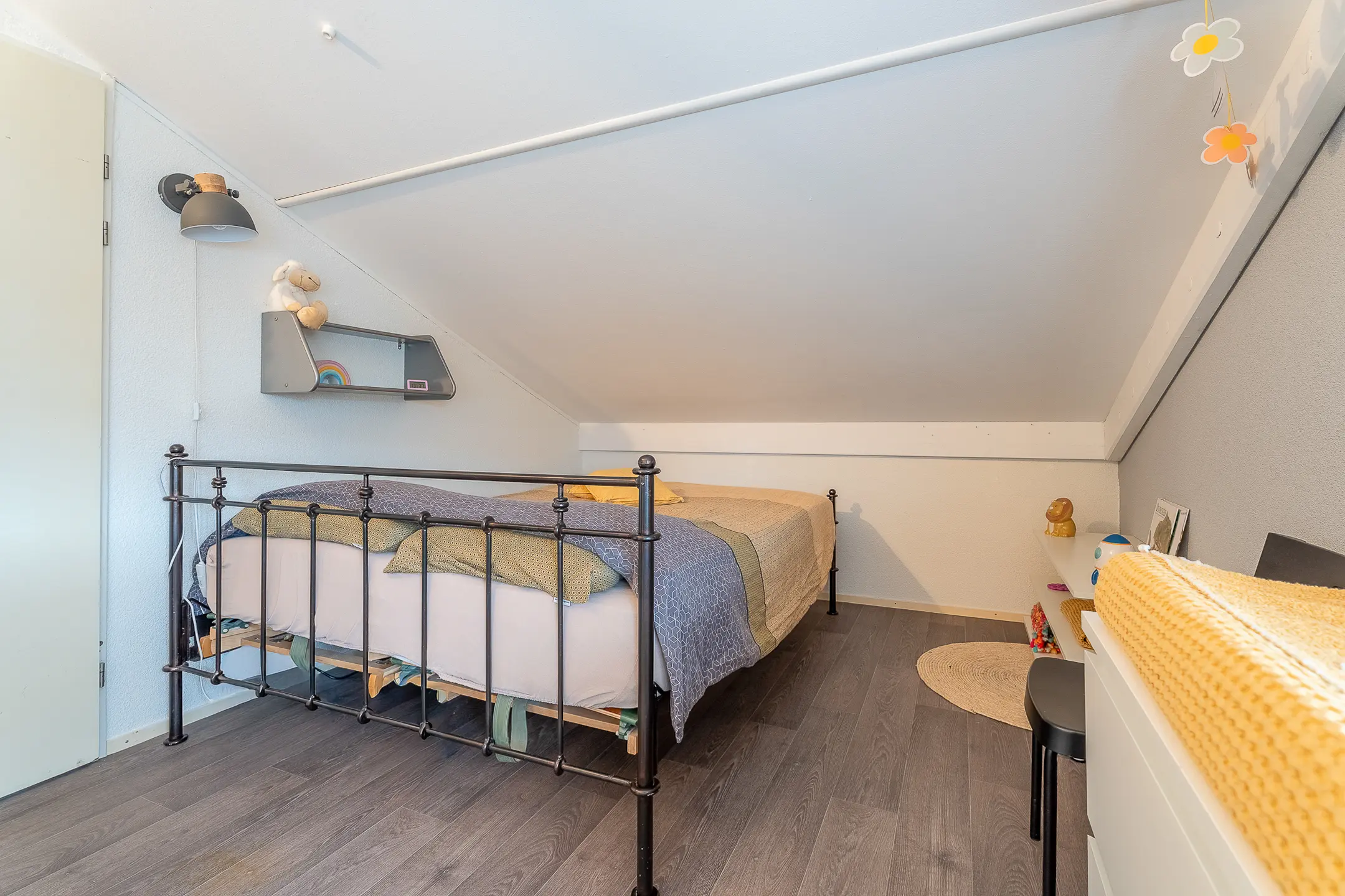 Via de vaste trap is de zolderverdieping te bereiken. Een volwaardige 2e verdieping welke is ingericht met een royale overloop, een 3e en een 4e (slaap)kamer en tweetal bergingen. Door de lessenaars kap en de grote ramen is er prettig veel lichtinval en stahoogte aanwezig. Onder de dak schuinte is voldoende bergruimte voor opslag en er zijn aansluitingen voor wasmachine en wasdroger. Ook deze verdieping is voorzien van een een lichte vinyl vloer met houtlook en de (slaap)kamers zijn prettig ruim, zo'n 15 en 18m².