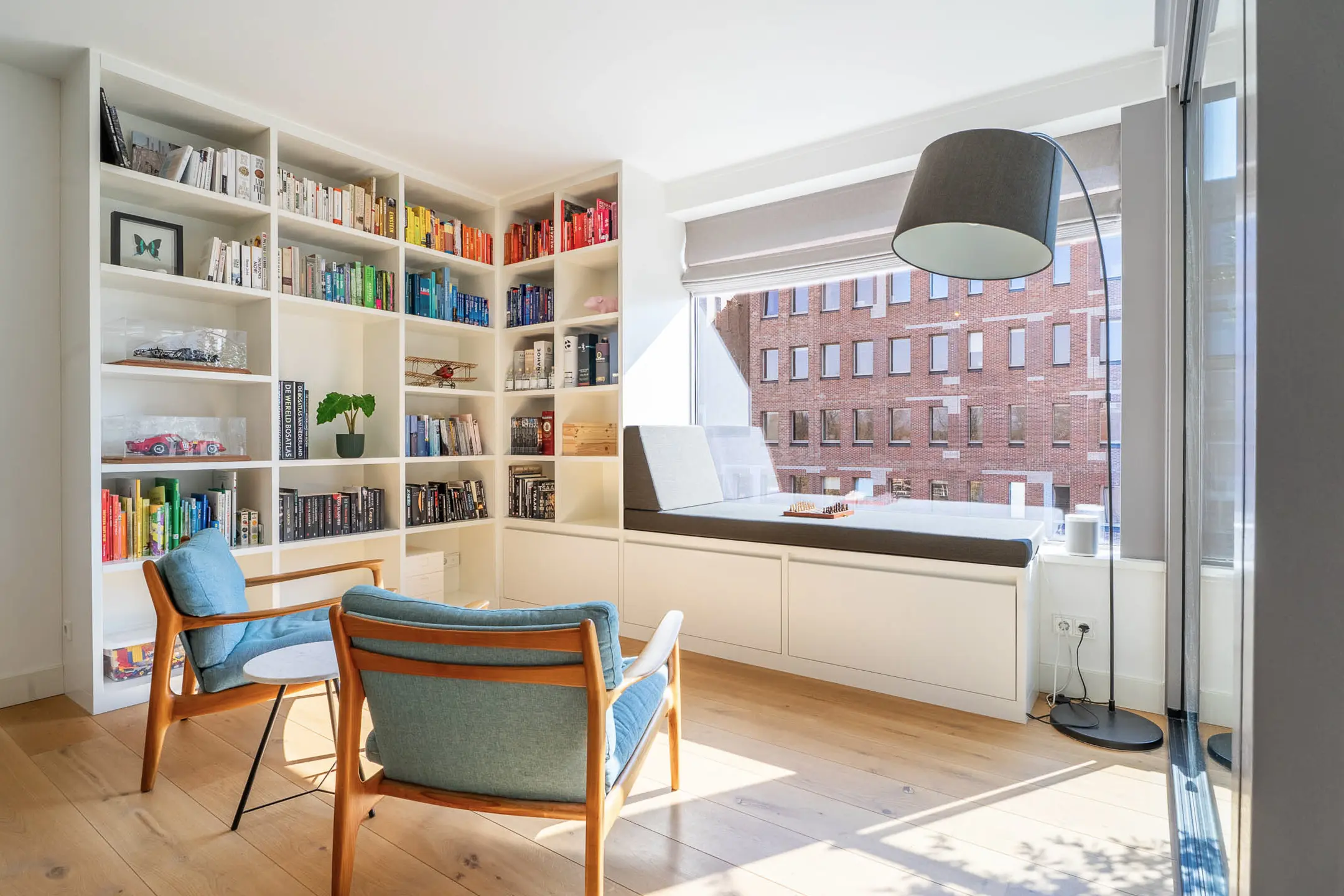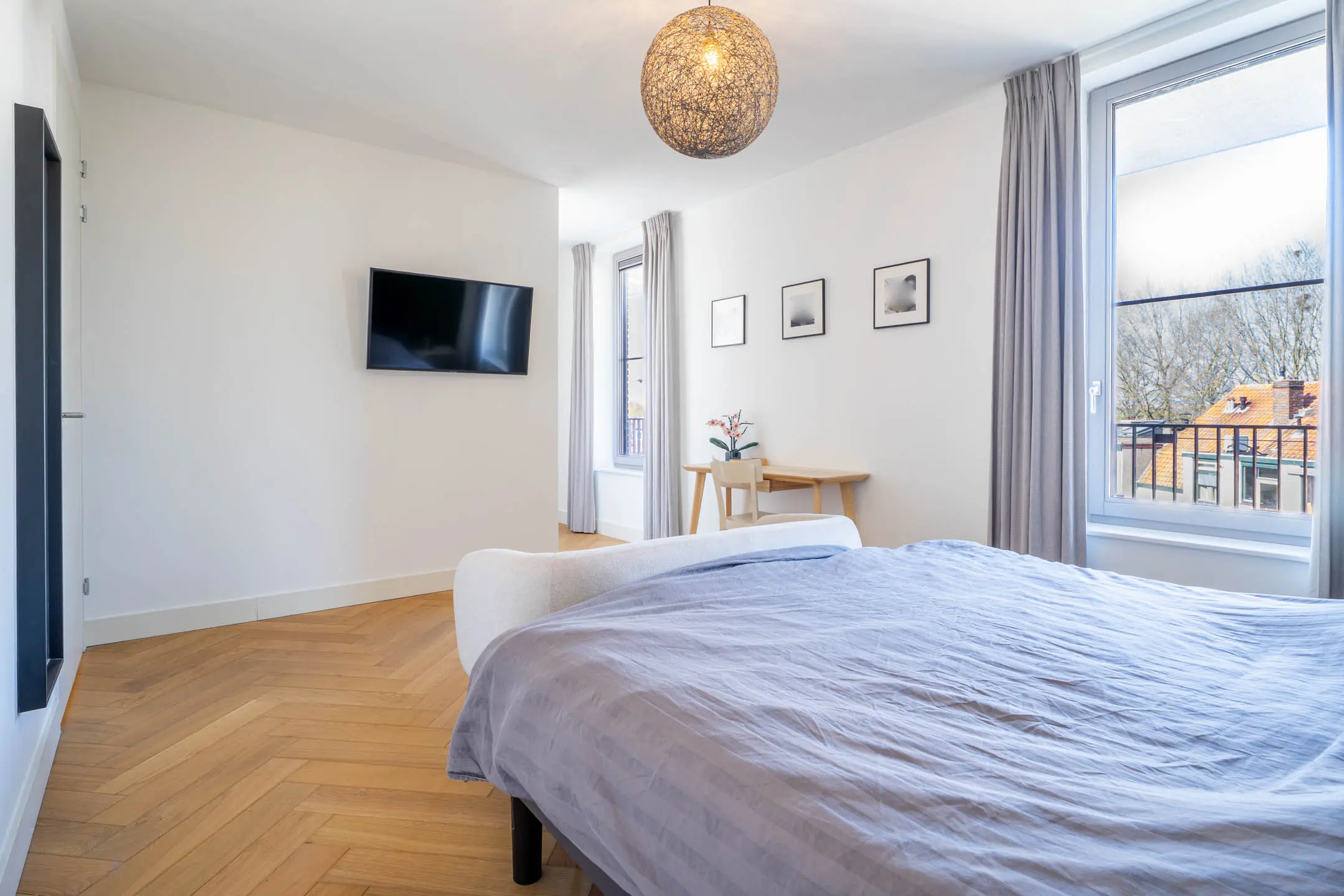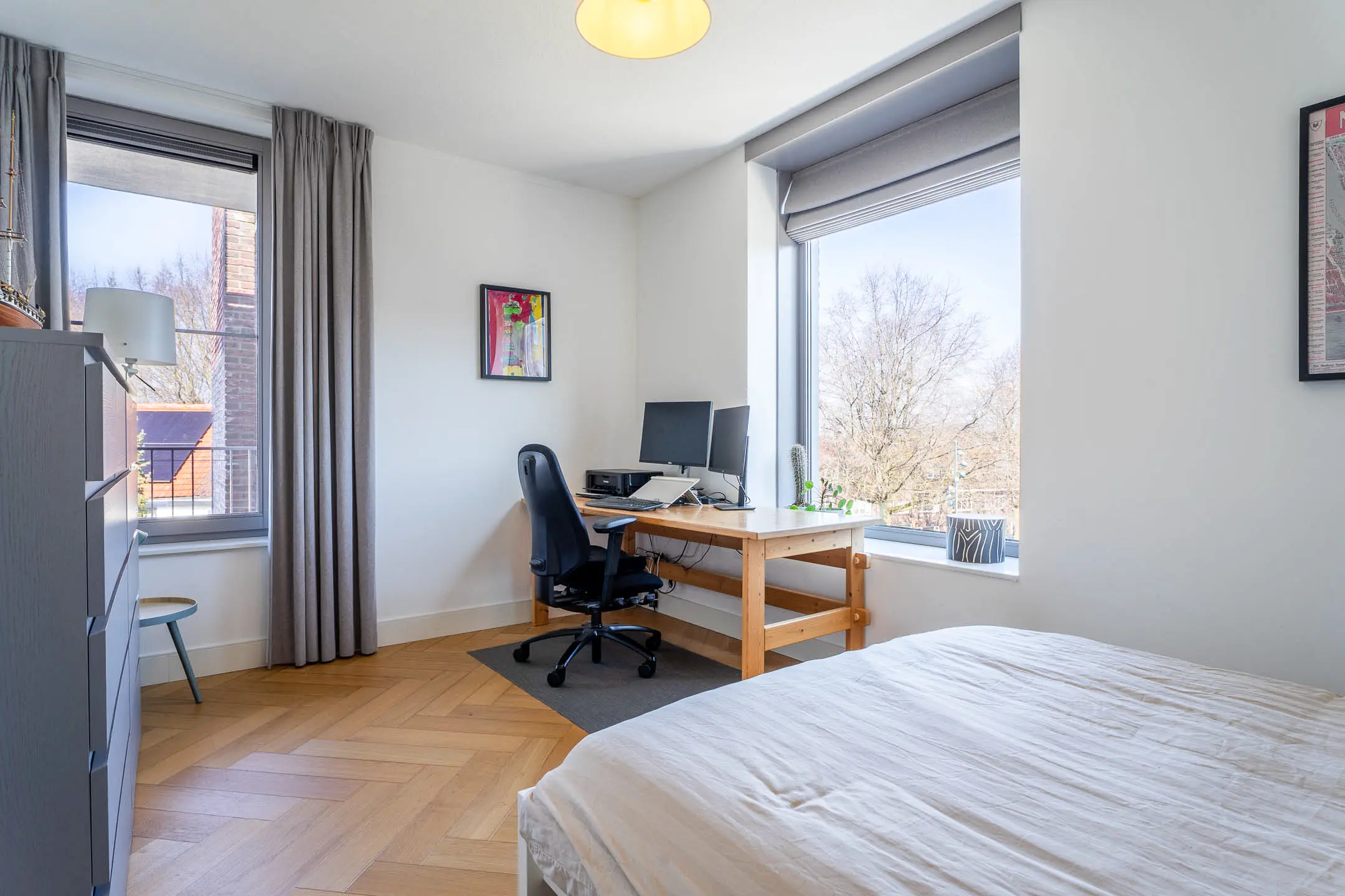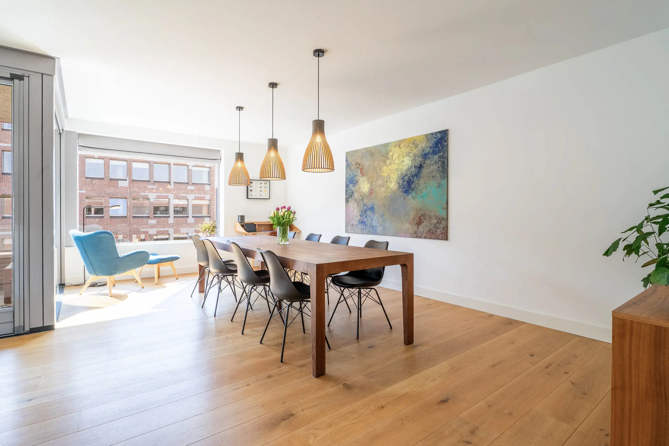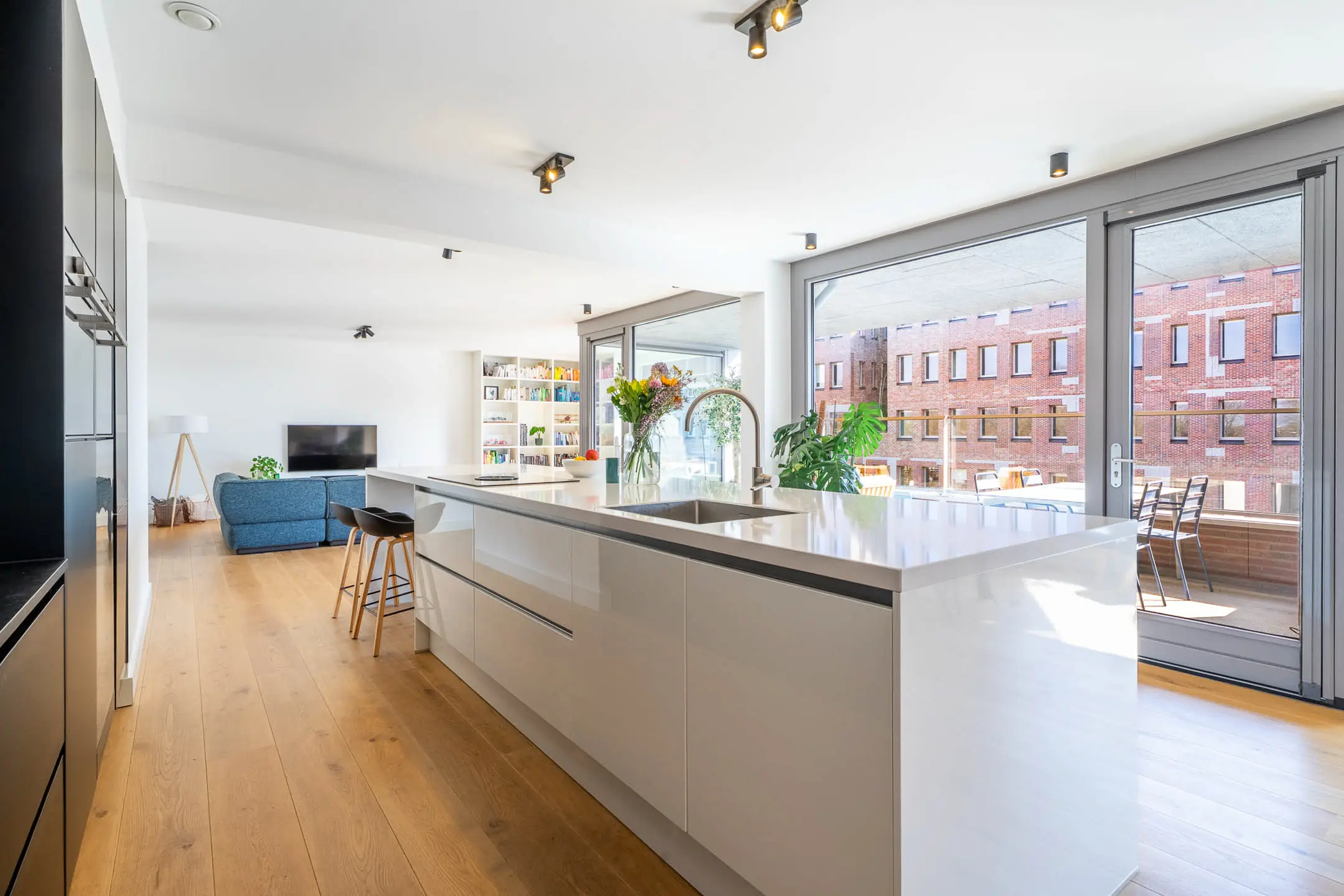 Bij binnenkomst in de woonkamer valt direct de riante en lichte leefruimte op. De royale woonkamer biedt volop mogelijkheden voor een stijlvolle zithoek en een grote eetkameropstelling, ideaal voor zowel ontspanning als het ontvangen van gasten. De grote raampartijen zorgen voor een prettige lichtinval en een ruimtelijk gevoel. Een fraai detail is de brede vensterbank met uitzicht over de Stationslaan – een perfecte plek om te ontspannen en te genieten van het levendige straatbeeld.