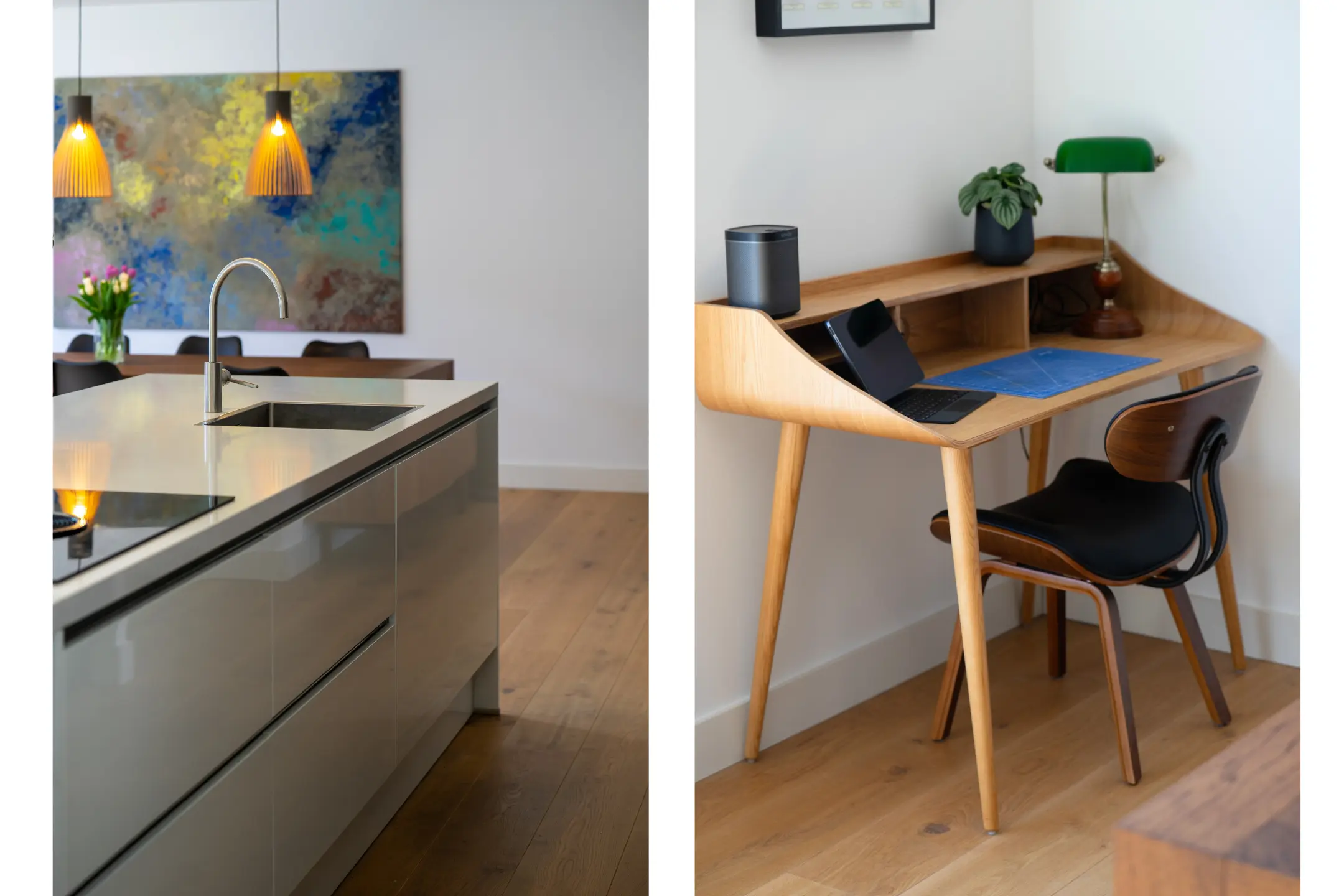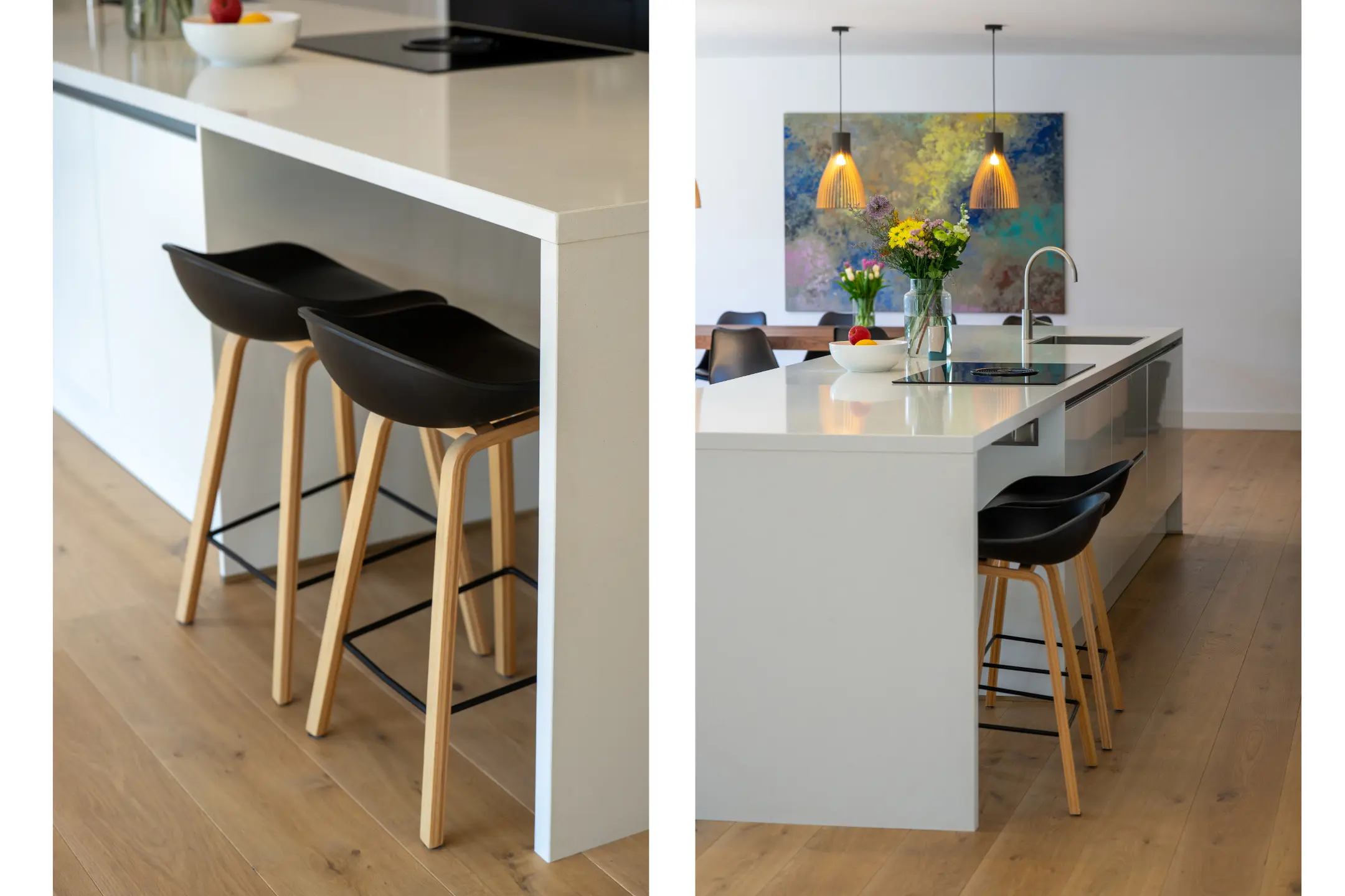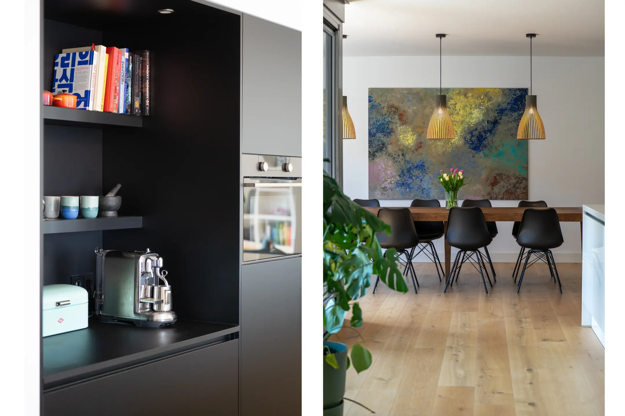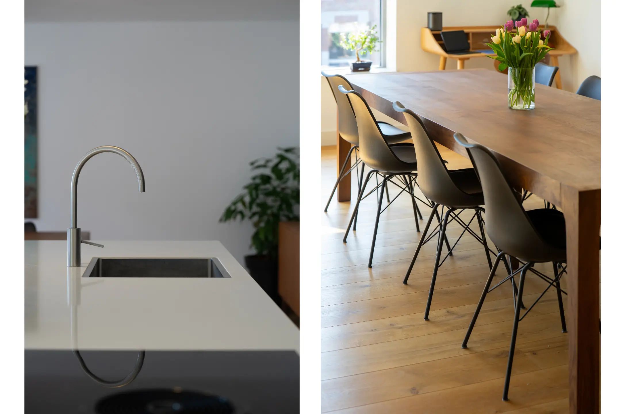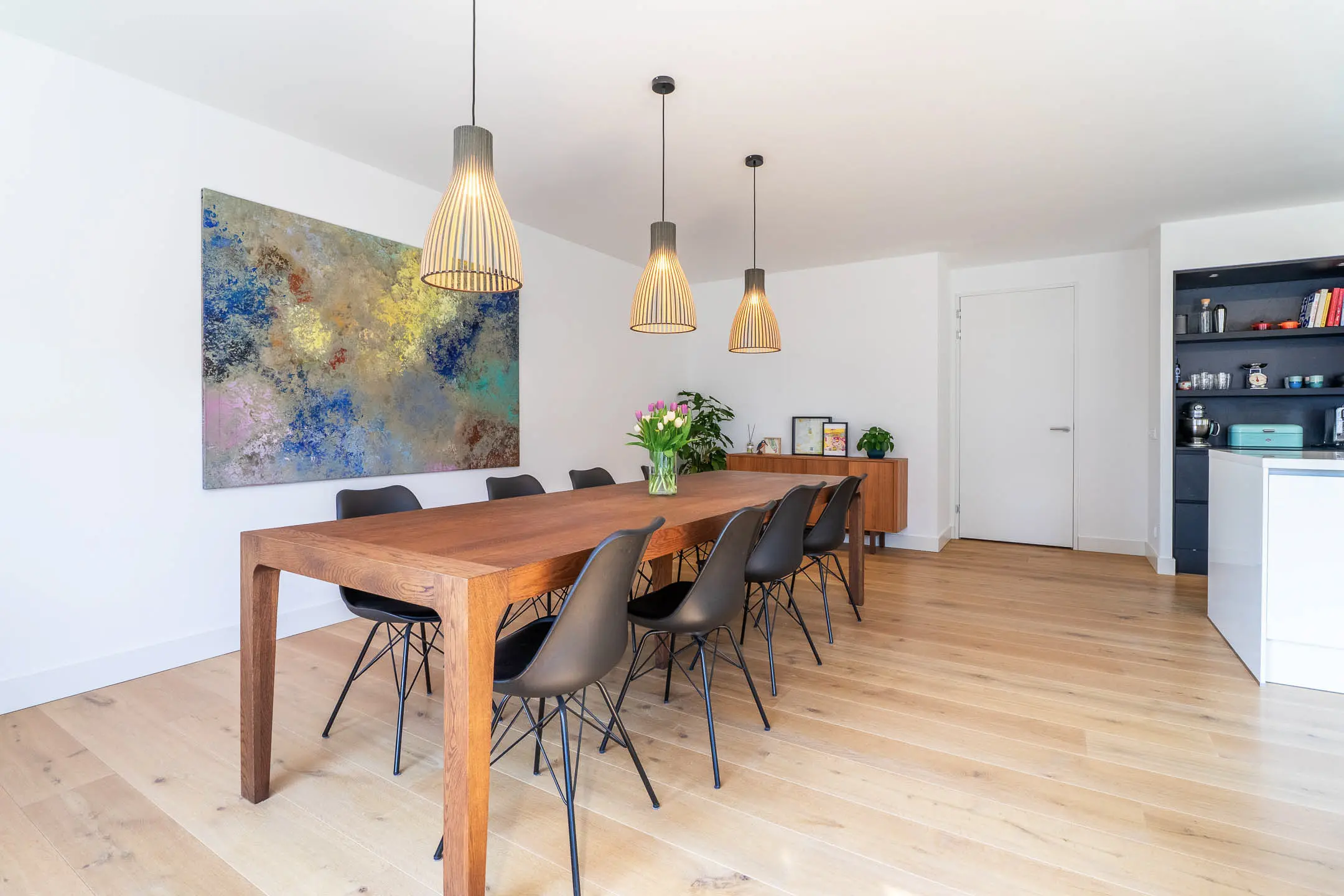Bij binnenkomst in de woonkamer valt direct de riante en lichte leefruimte op. De royale woonkamer biedt volop mogelijkheden voor een stijlvolle zithoek en een grote eetkameropstelling, ideaal voor zowel ontspanning als het ontvangen van gasten. De grote raampartijen zorgen voor een prettige lichtinval en een ruimtelijk gevoel. Een fraai detail is de brede vensterbank met uitzicht over de Stationslaan – een perfecte plek om te ontspannen en te genieten van het levendige straatbeeld.