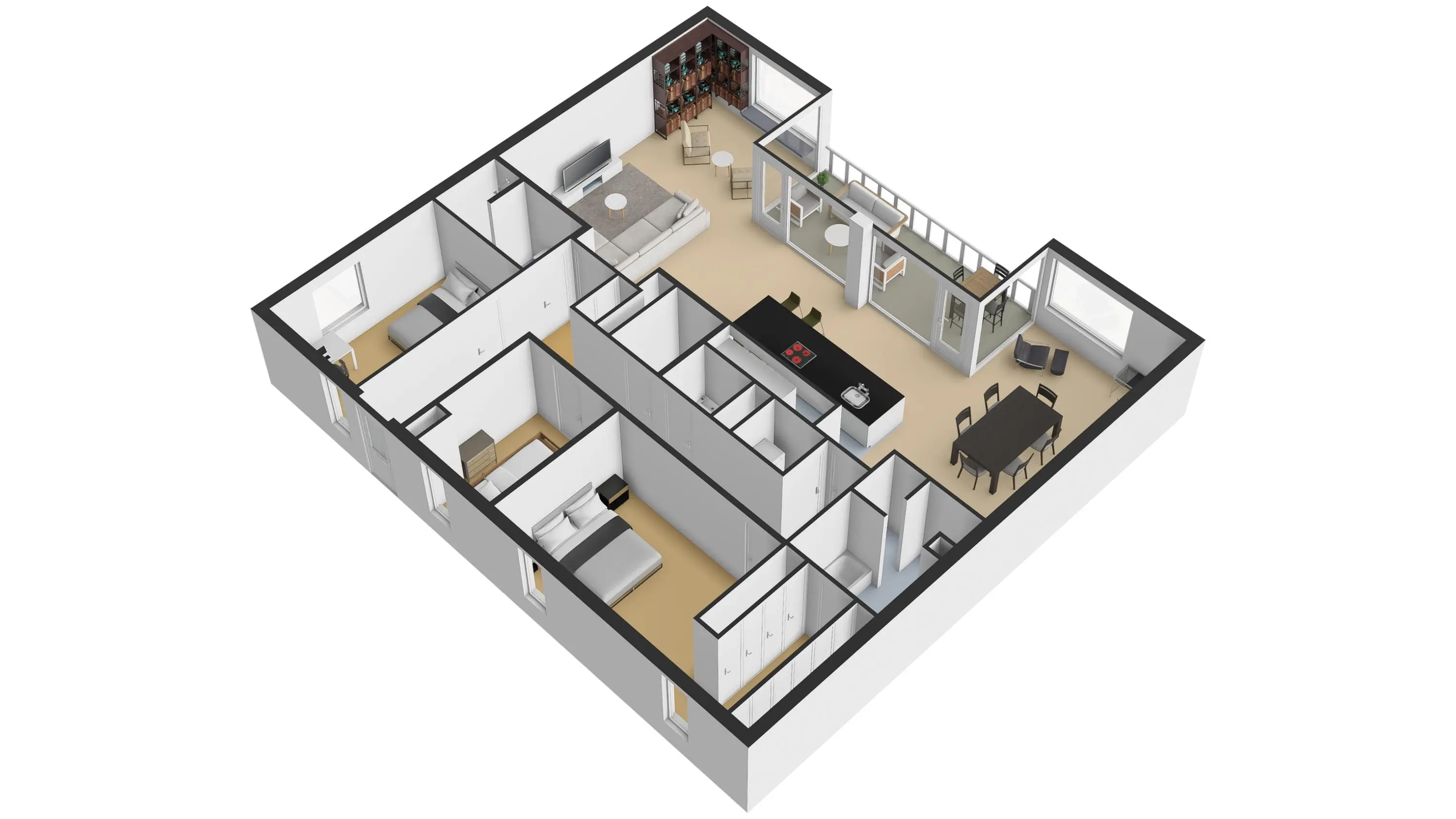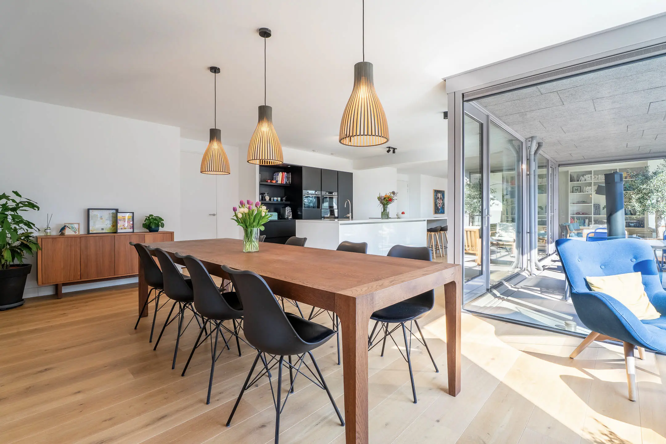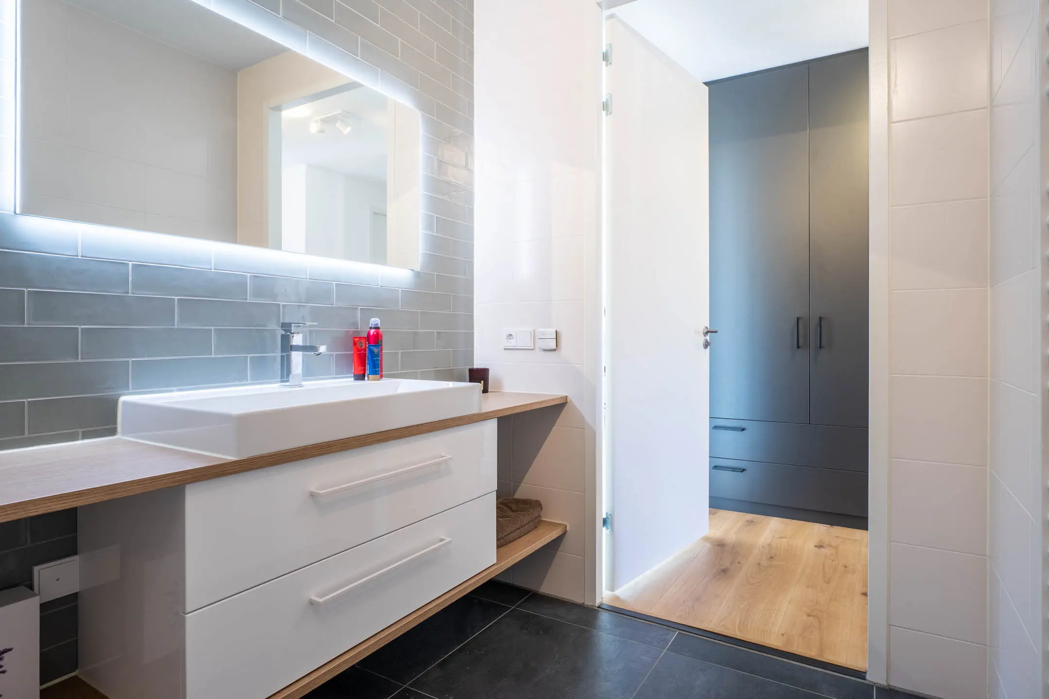Daarnaast zijn er nog twee volwaardige slaapkamers en een tweede badkamer, uitgerust met een stijlvol wastafelmeubel en een inloopdouche – ideaal voor gasten of gezinsleden.