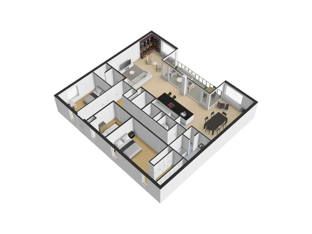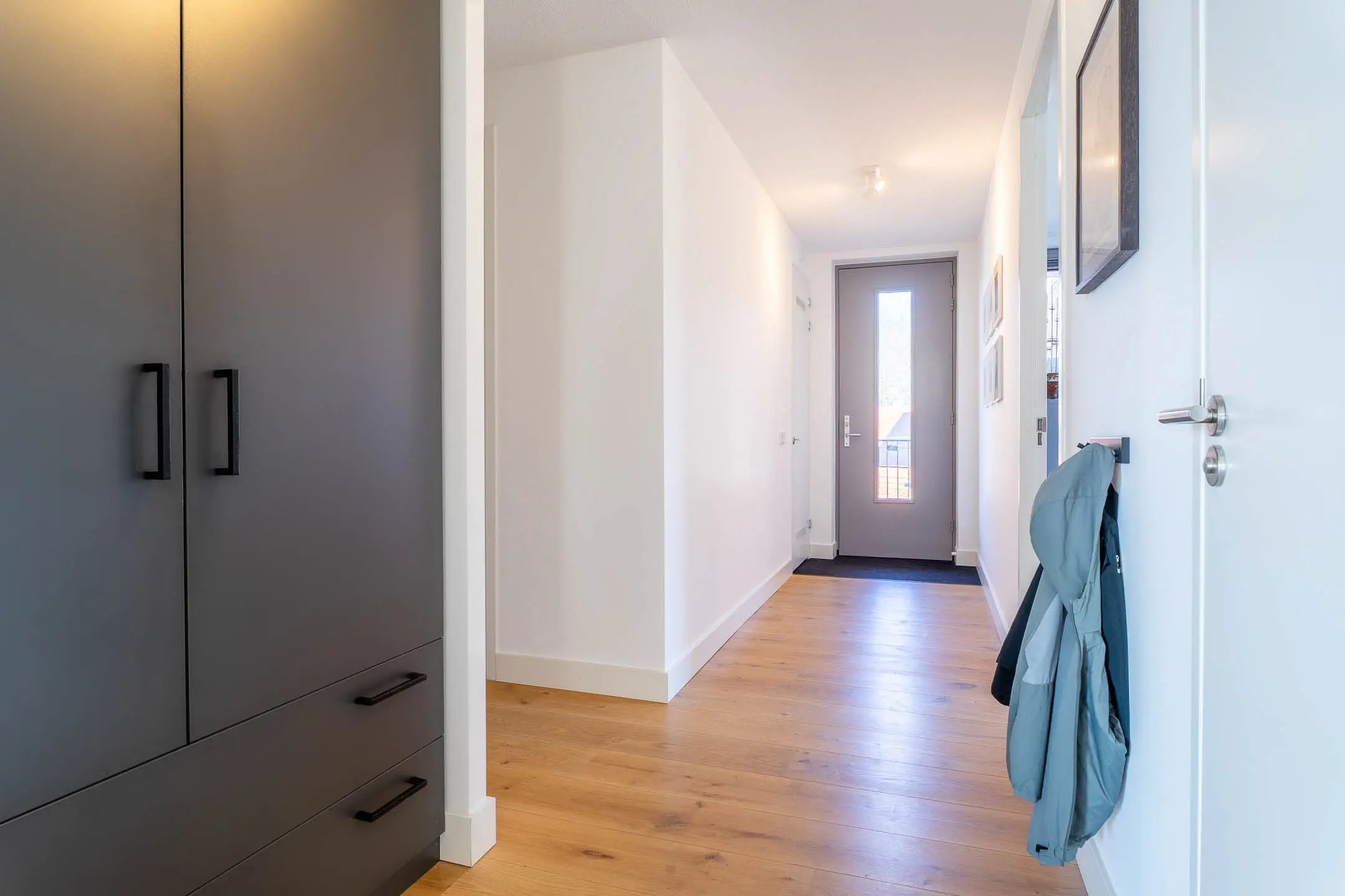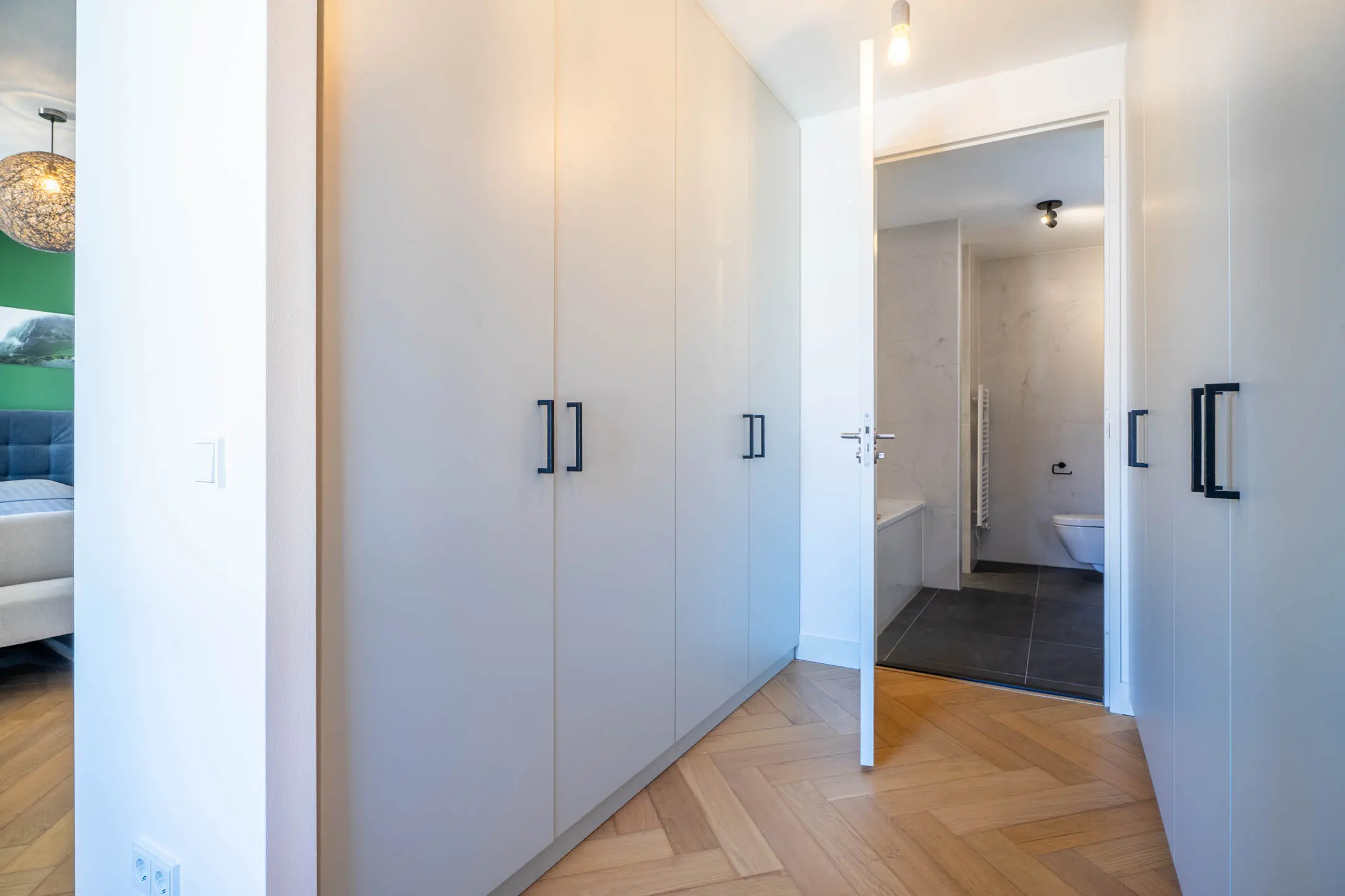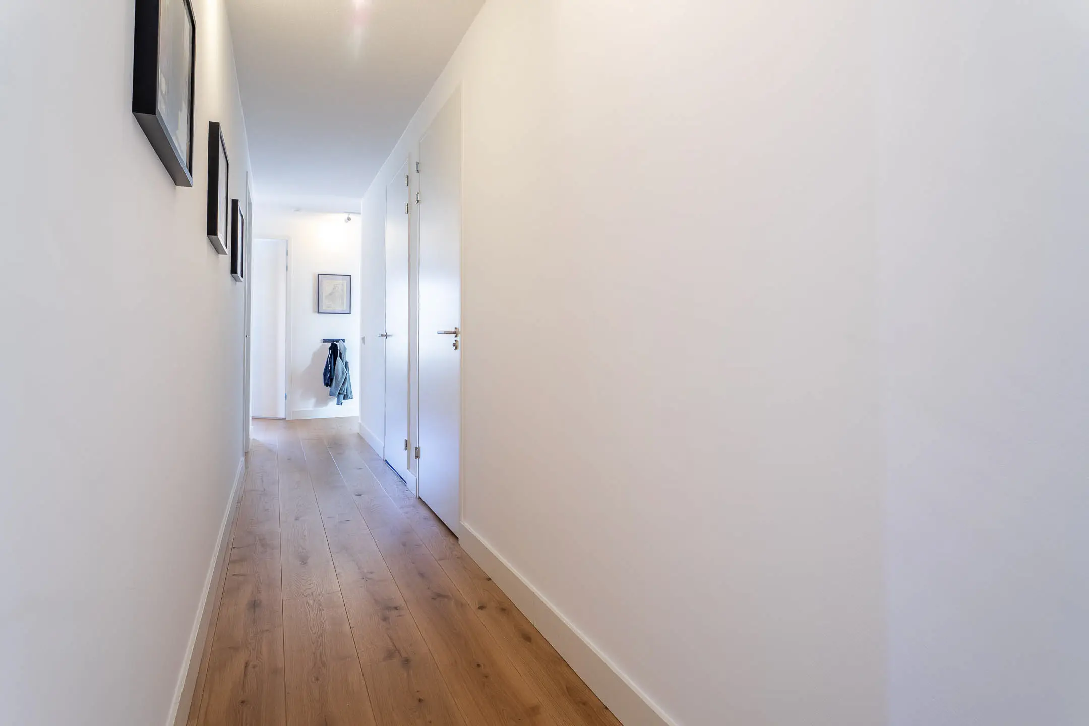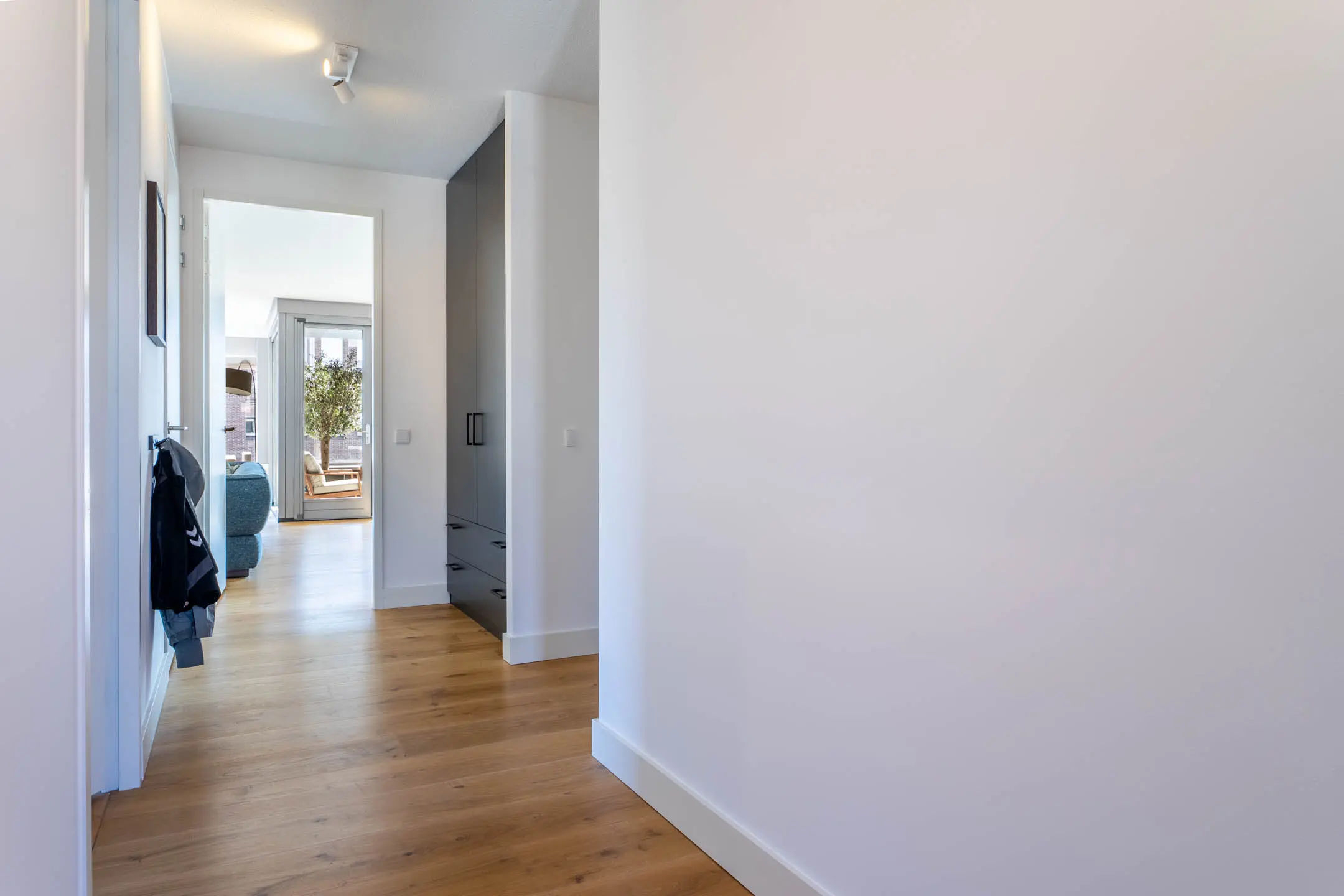 Via de entree betreedt je de ruime centrale hal, die toegang biedt tot alle vertrekken van het appartement en direct de hoogwaardige afwerking en royale opzet benadrukt.