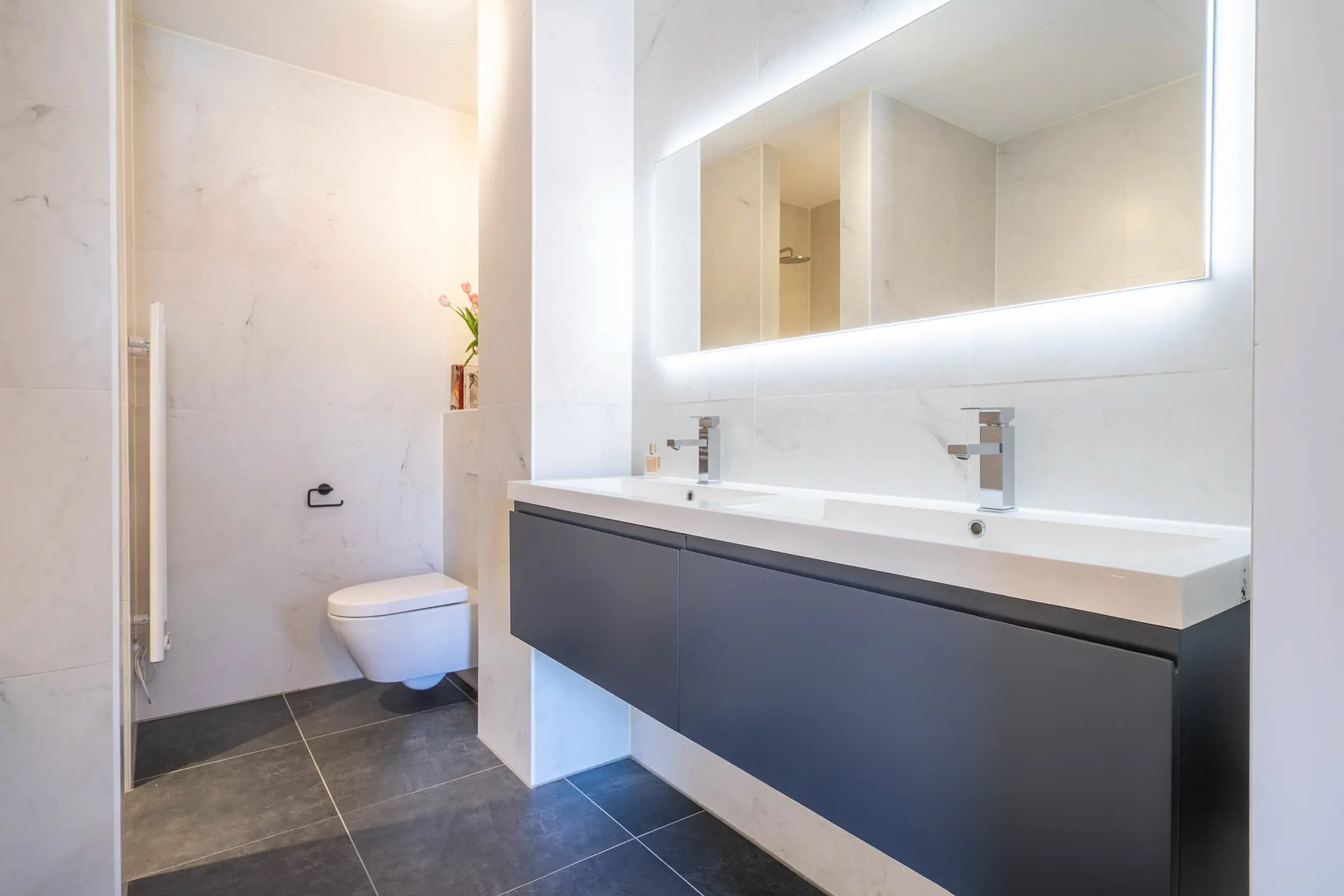 • Wanden afgewerkt met strak stucwerk