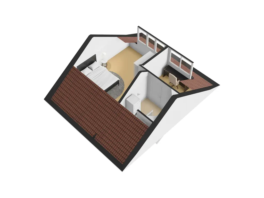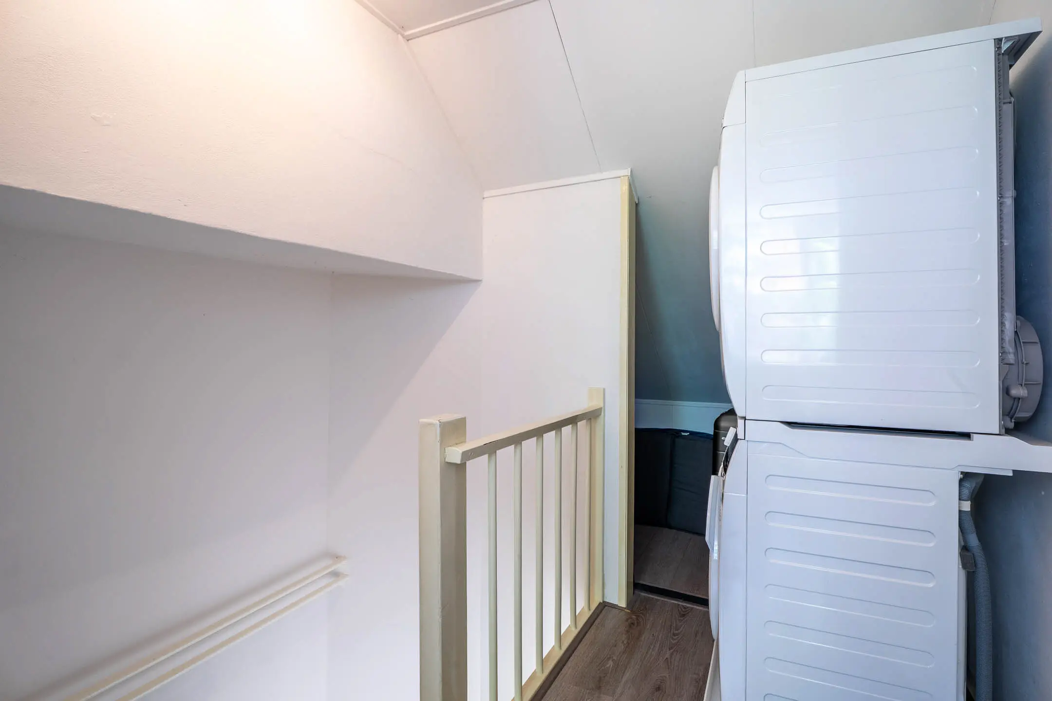 Deze verdieping heeft een kunststof dakkapel aan de achterzijde over de gehele breedte van de woning. Op de tweede verdieping is een overloop, waskamer en 1 slaapkamer.