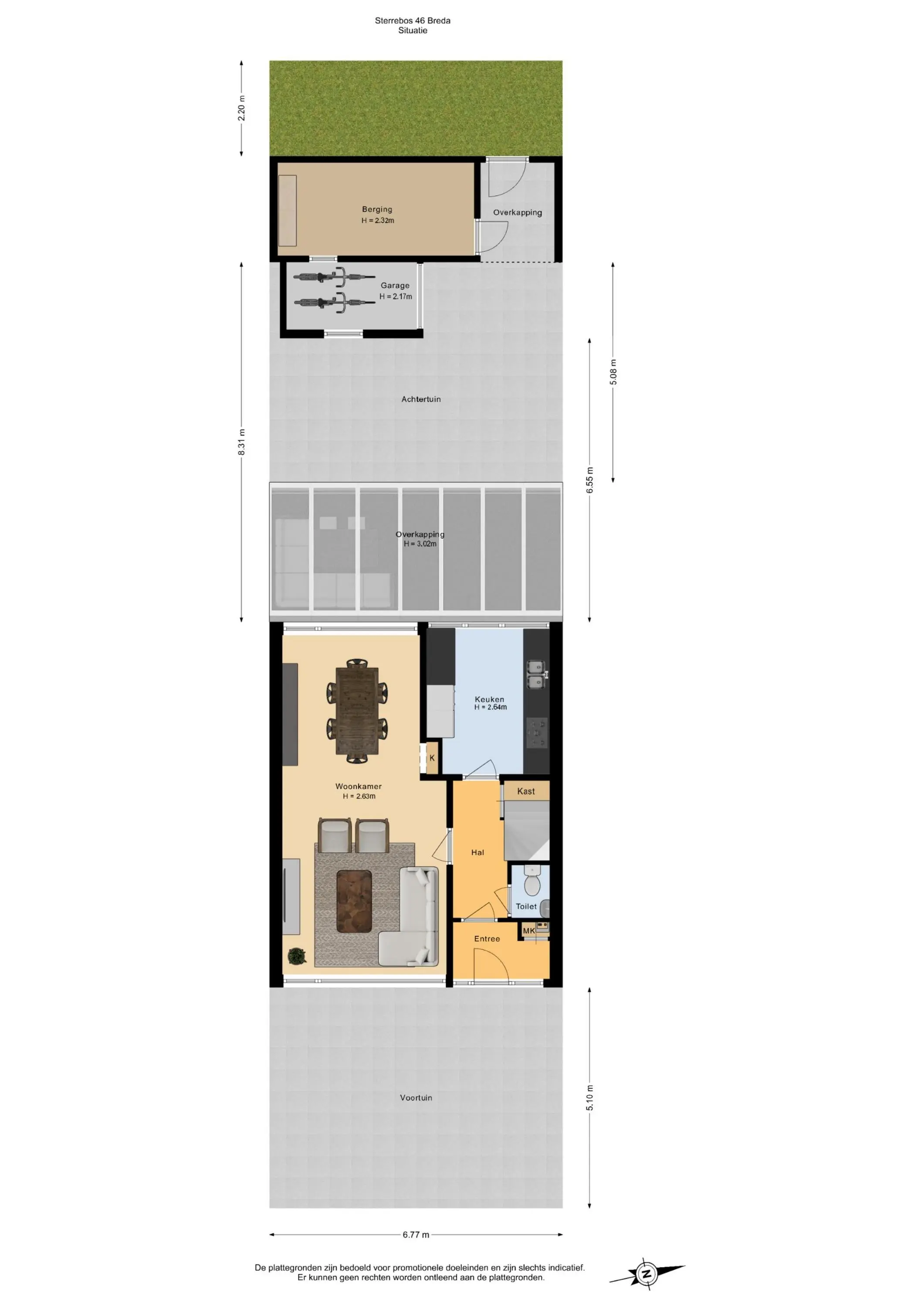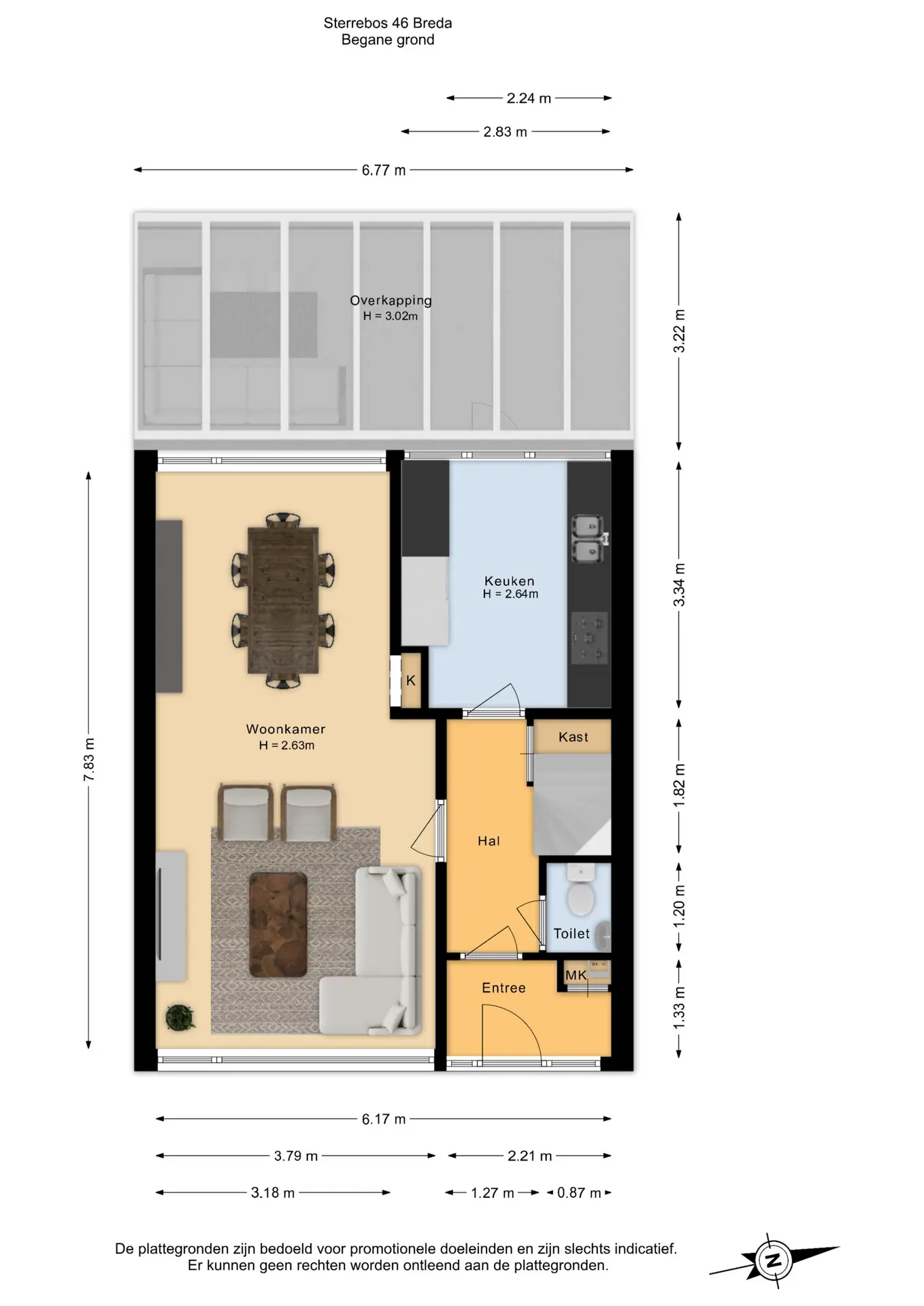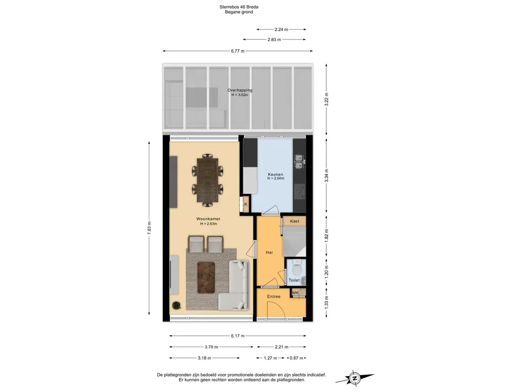 Op de begane grond bevinden zich de entree, hal, meterkast, toiletruimte, woonkamer en keuken.