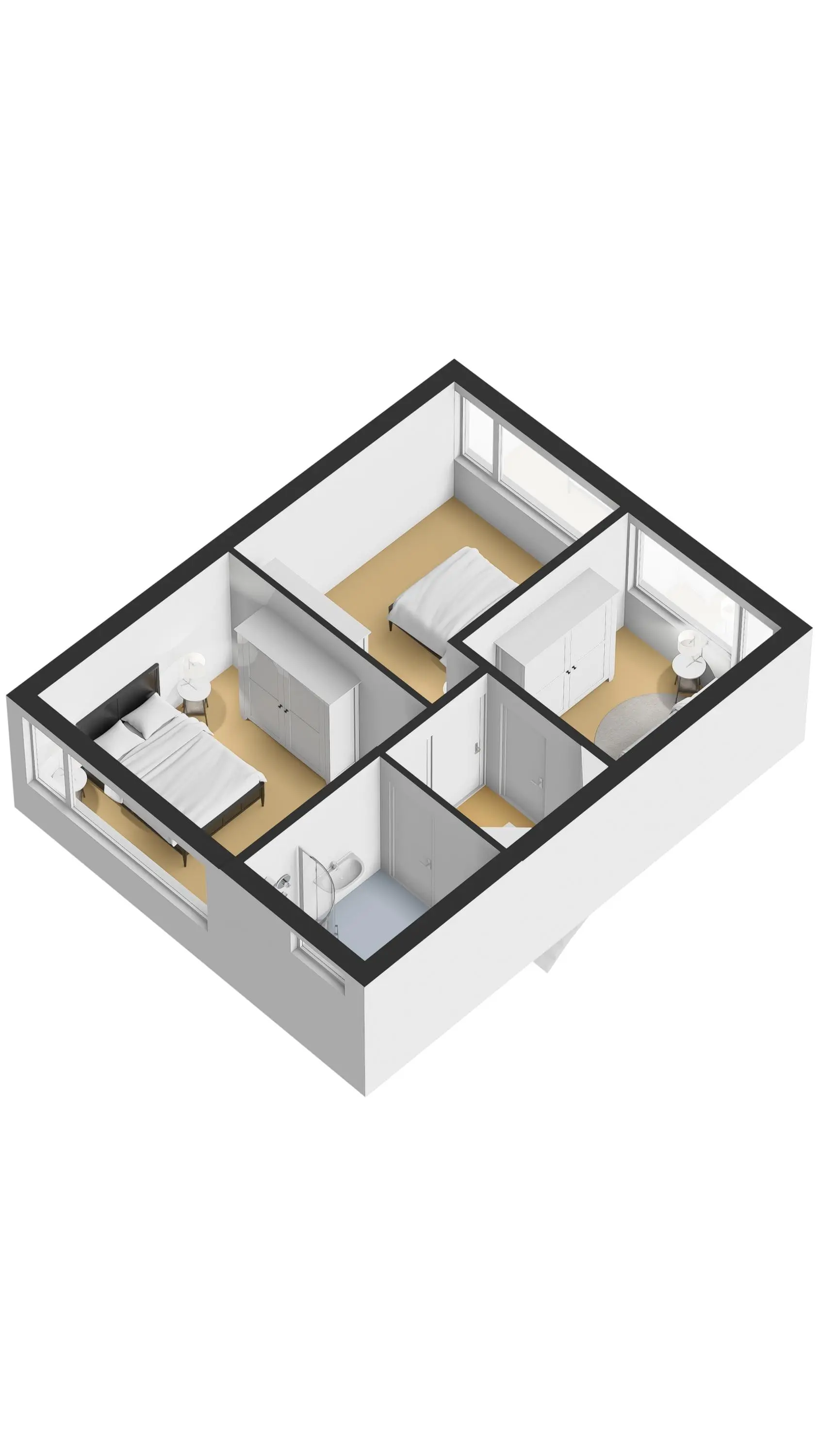 De slaapkamers zijn afgewerkt met een laminaatvloer en stucwerk.