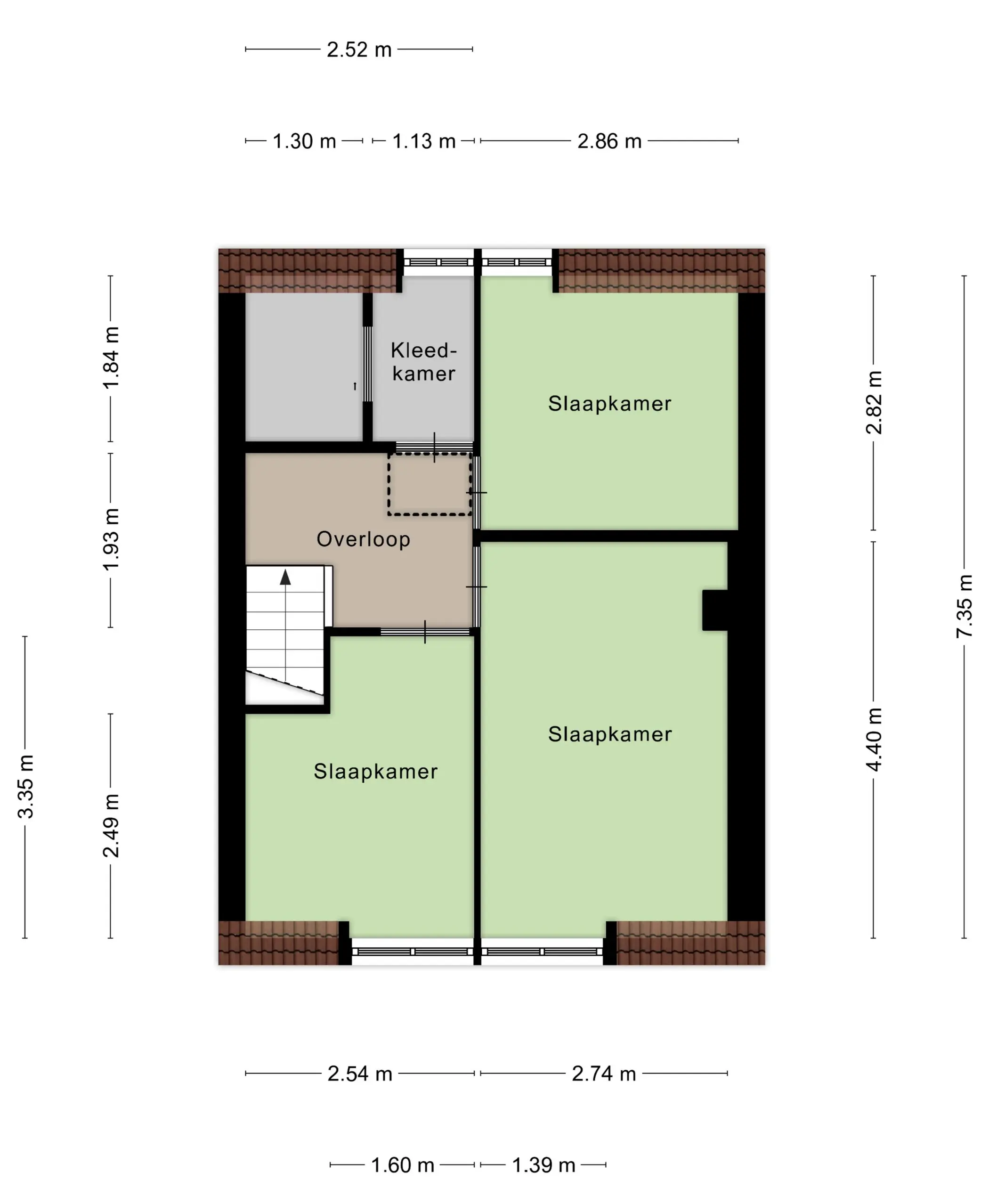 De slaapkamers zijn voorzien van nieuwe dakkapellen met kunststof kozijnen (HR++ glas) en geïntegreerde elektrisch te bedienen rolluiken.