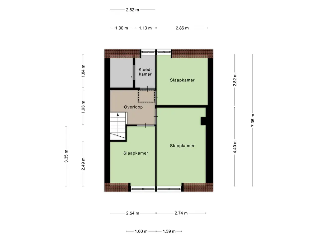 Slaapkamer II (ca. 3m35 x 2m54) ook gelegen aan de voorzijde.