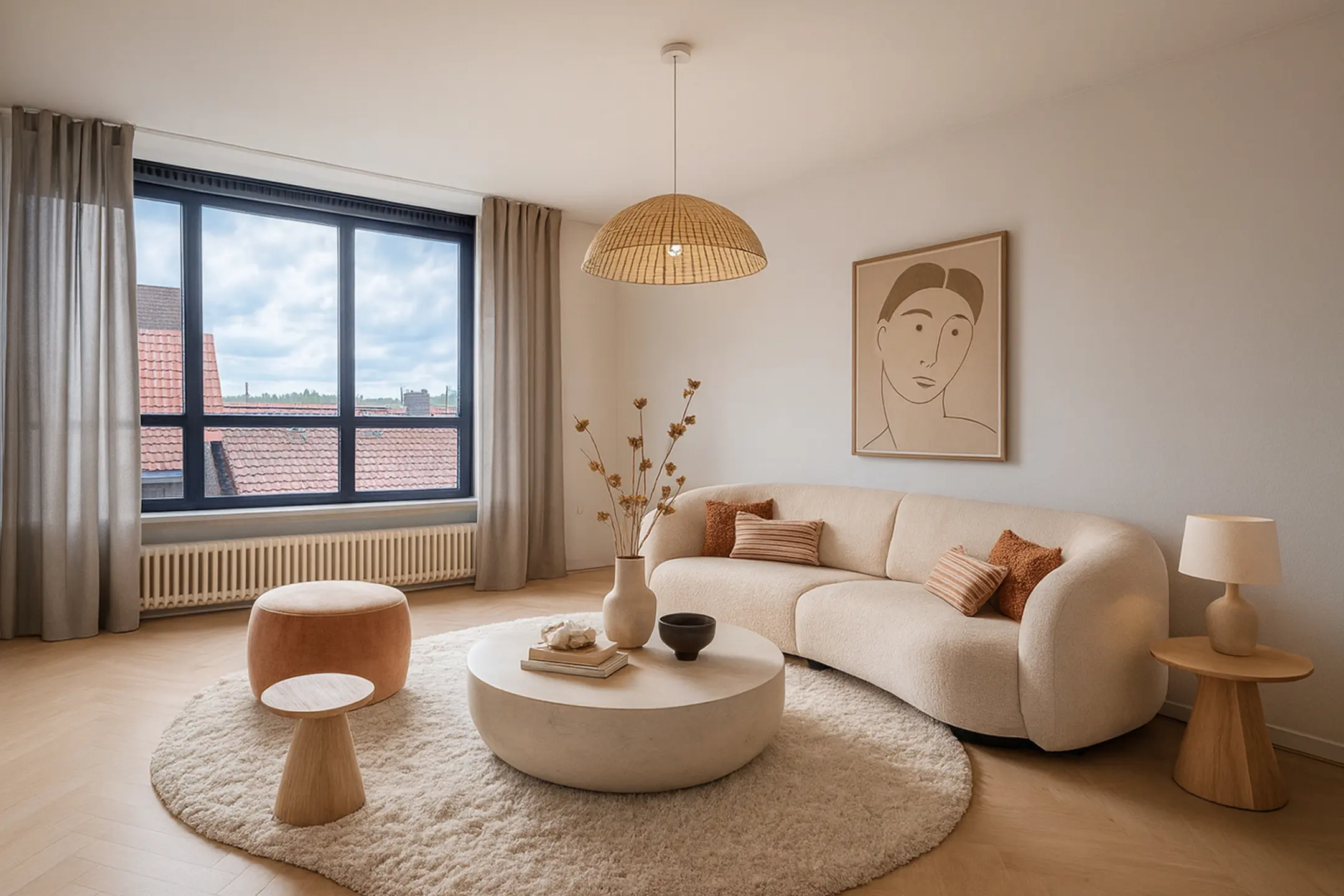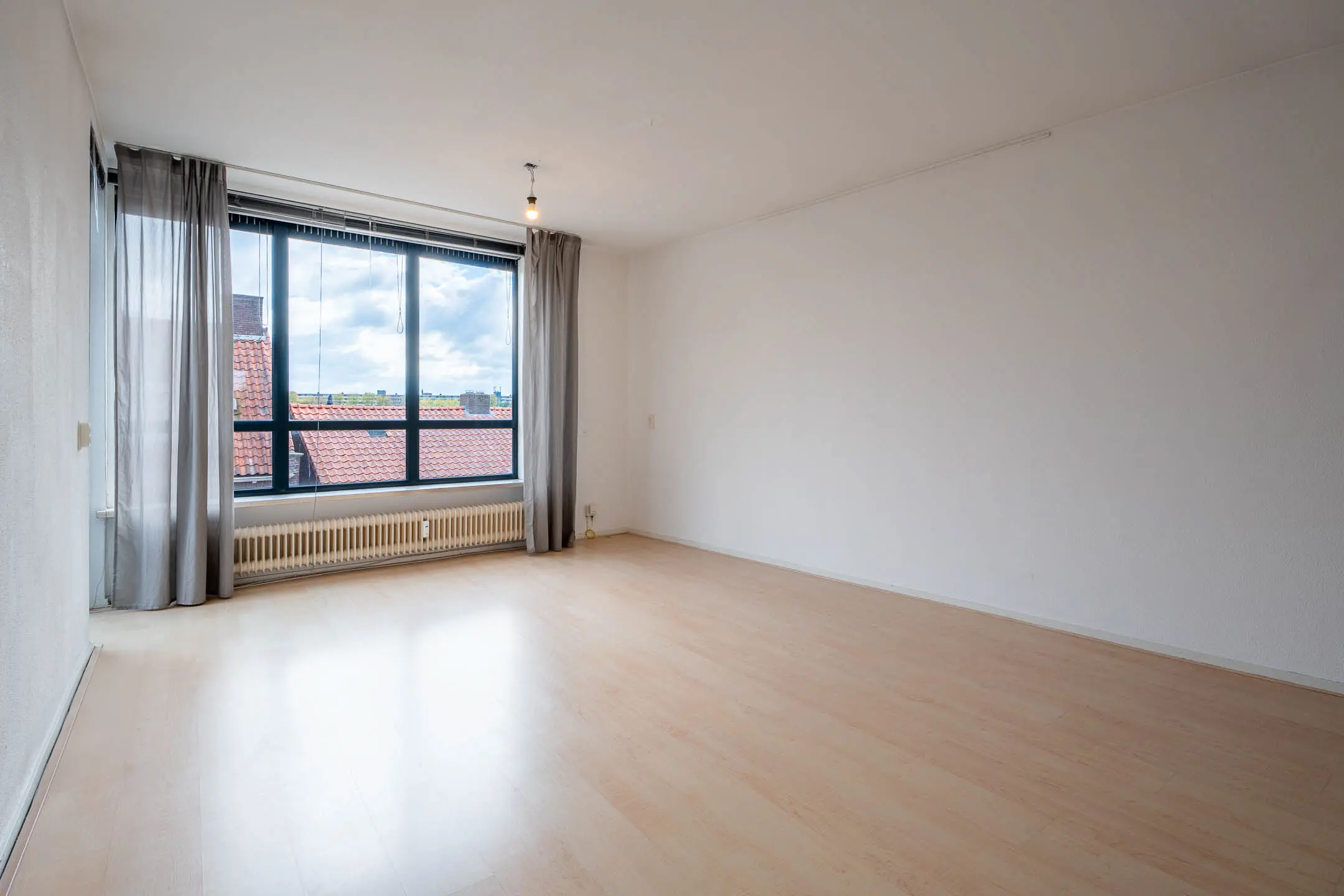 Royale en lichte living, die voorheen bestond uit de woonkamer en een derde slaapkamer. Door het samenvoegen van de voormalige slaapkamer met de woonkamer is er een extra ruime living ontstaan, met ramen aan zowel de voor- als achtergevel. Aan de voorzijde van de woonkamer is er een loopdeur met toegang tot het balkon. Voor het opslaan van je spulletjes vind je in de woonkamer twee vaste kasten.