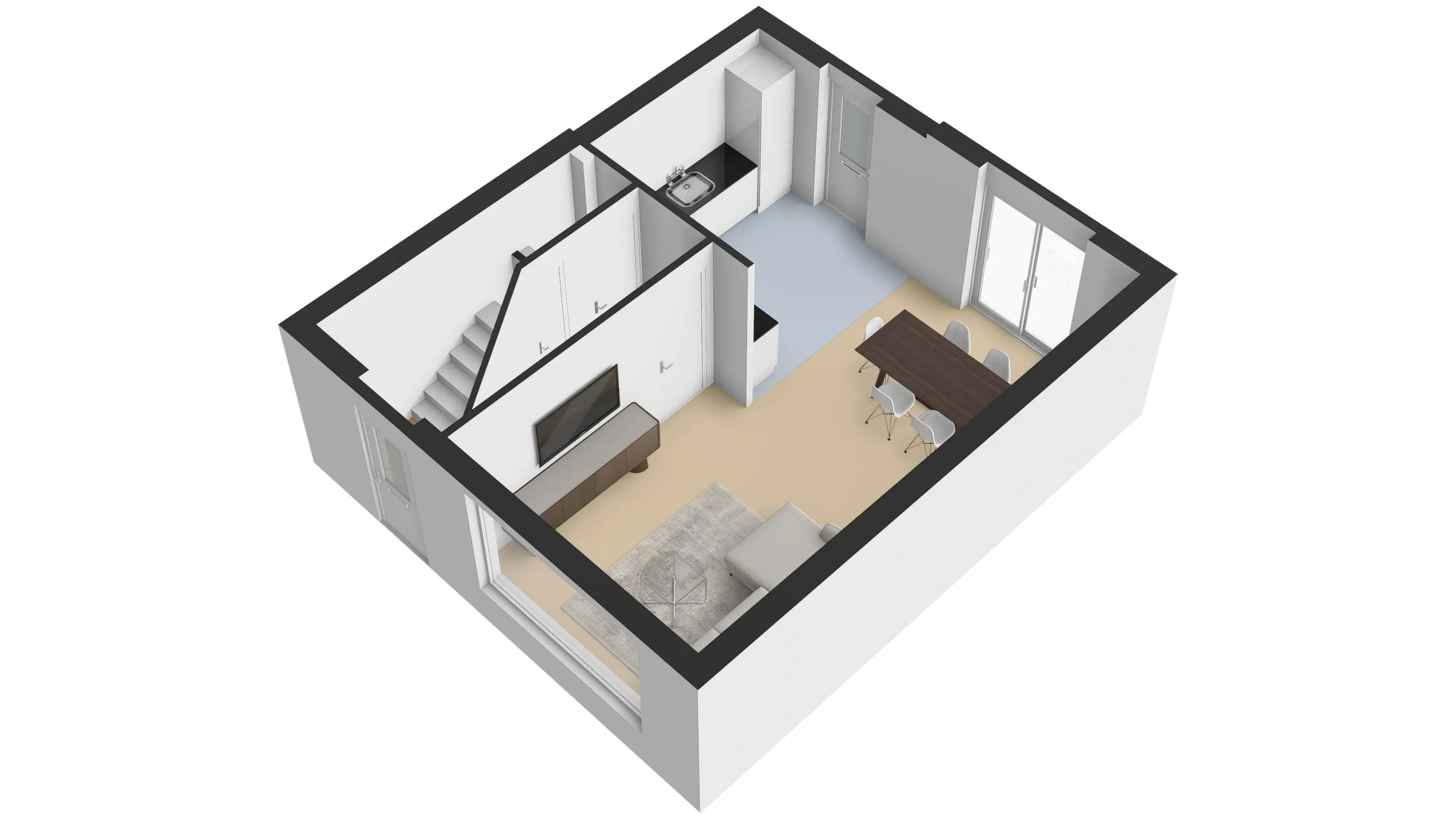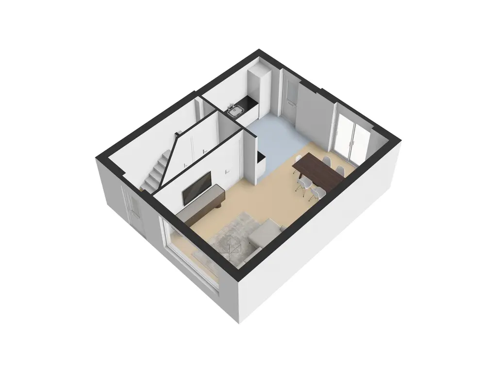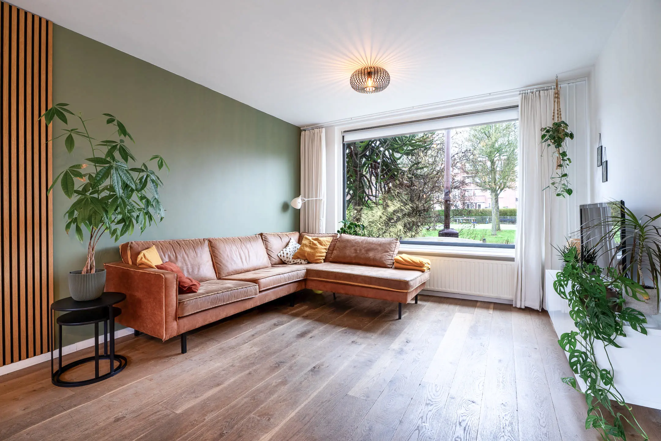 De sfeervolle woonkamer is heerlijk licht dankzij de grote raampartijen en is afgewerkt met een warme houten planken vloer. De ruimte biedt volop mogelijkheden voor een gezellige zit- en eethoek. Via de schuifpui of de deur in de keuken stap je zo de achtertuin in – perfect voor binnen-buiten leven.