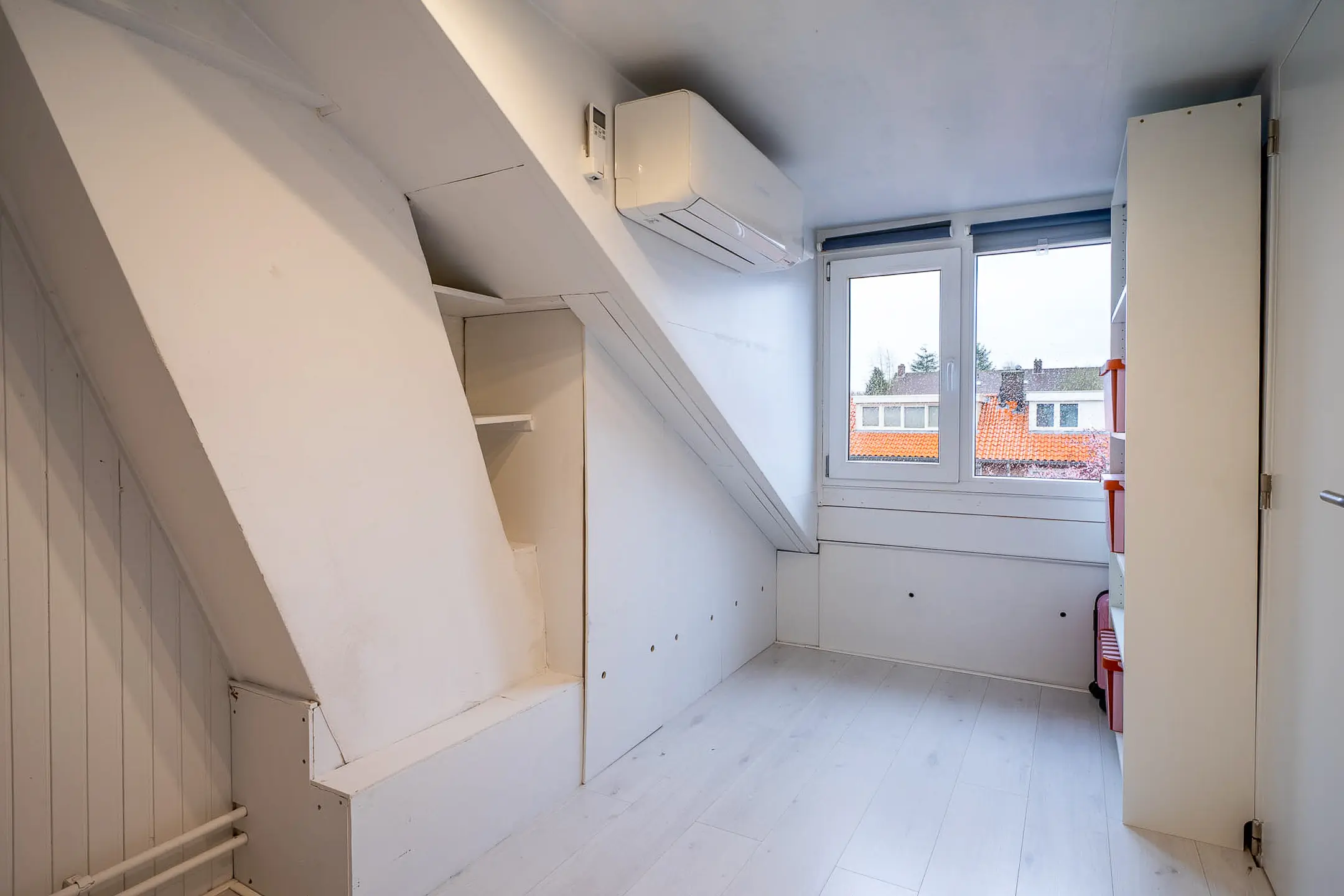 De tweede verdieping bestaat uit een voorzolder en twee extra slaapkamers. Op de voorzolder vind je de opstelling van de cv-ketel (Nefit 2013) en een airco-installatie.
