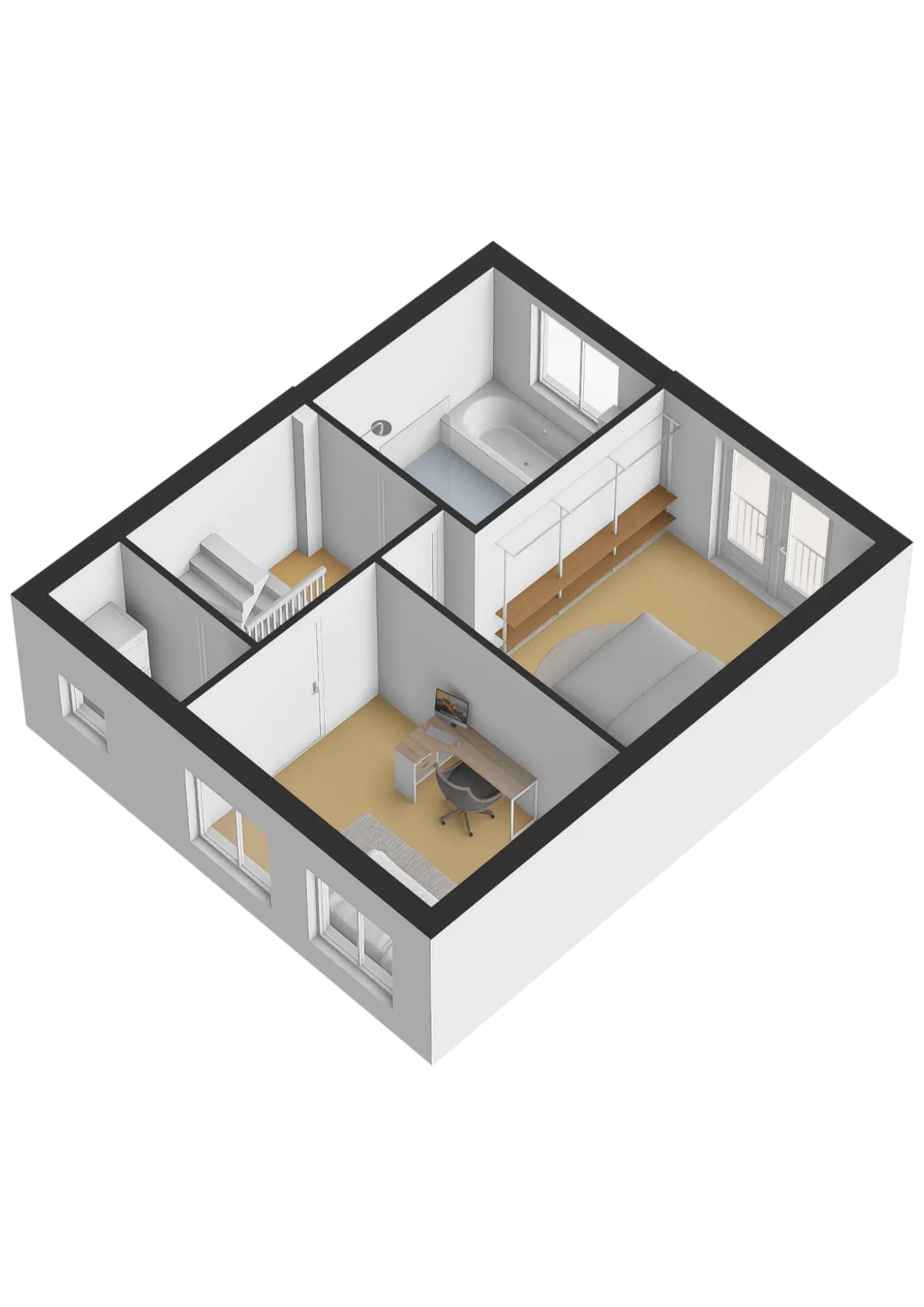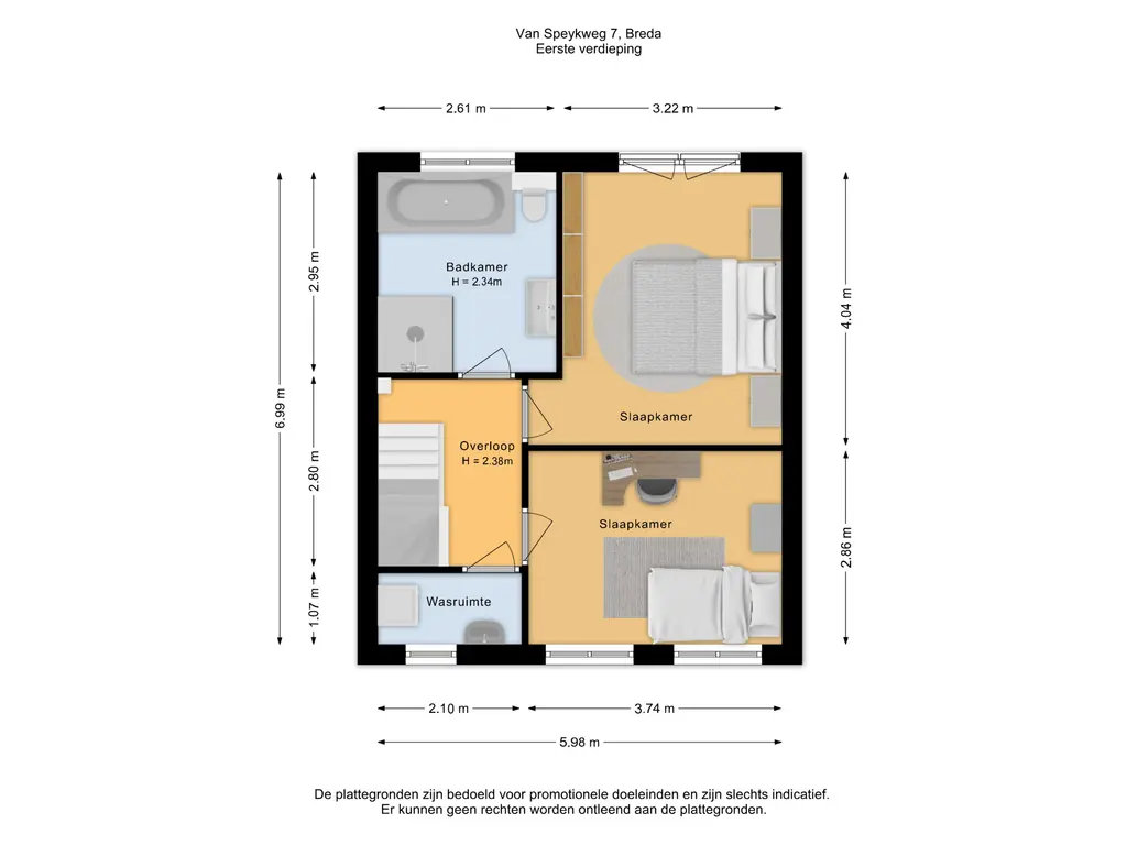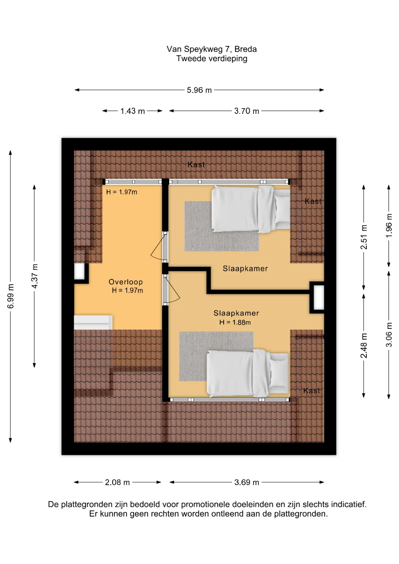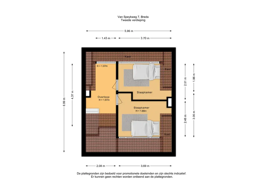 Let op: door de lagere plafondhoogte zijn deze kamers aangemerkt als overige inpandige ruimte, maar ze bieden volop praktische gebruiksmogelijkheden.