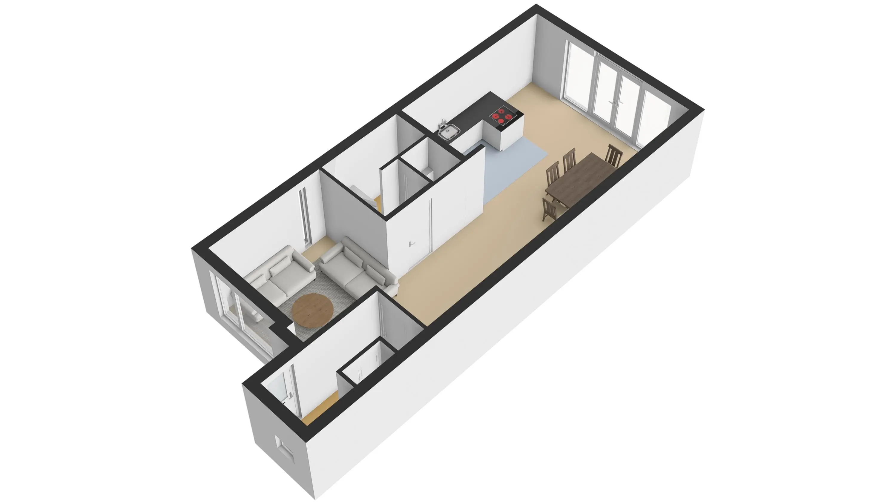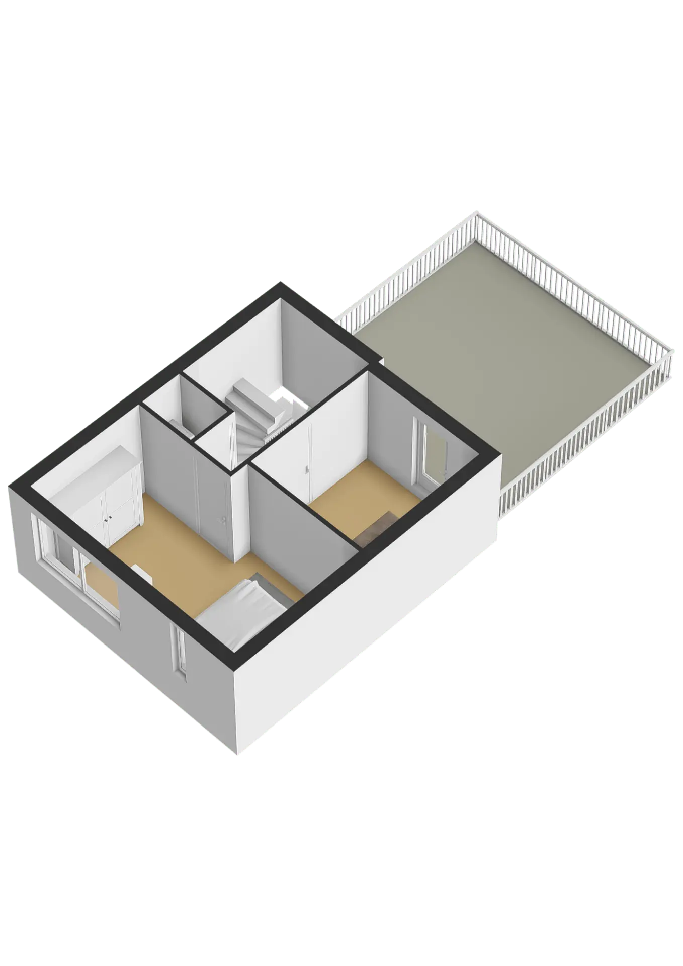 • Totaal drie slaapkamers, verdeeld over twee verdiepingen.
