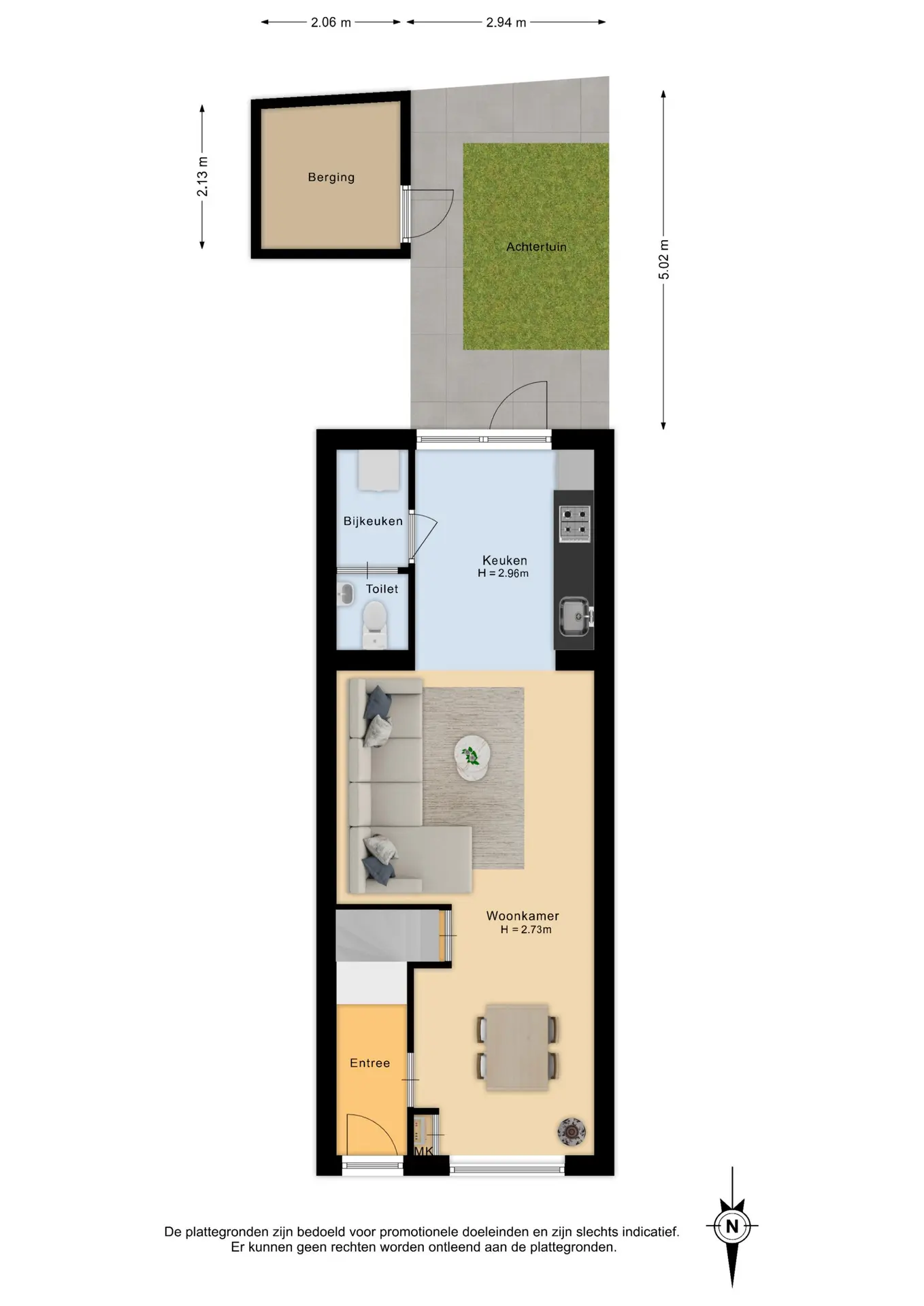 De woning beschikt over een onderhoudsvriendelijke achtertuin die op het zuiden gelegen is. Hier kun je dus de hele dag genieten van het zonnetje. De tuin is voorzien van een eigen achterom en een berging voor de stalling van fietsen, opslag en tuingereedschap.