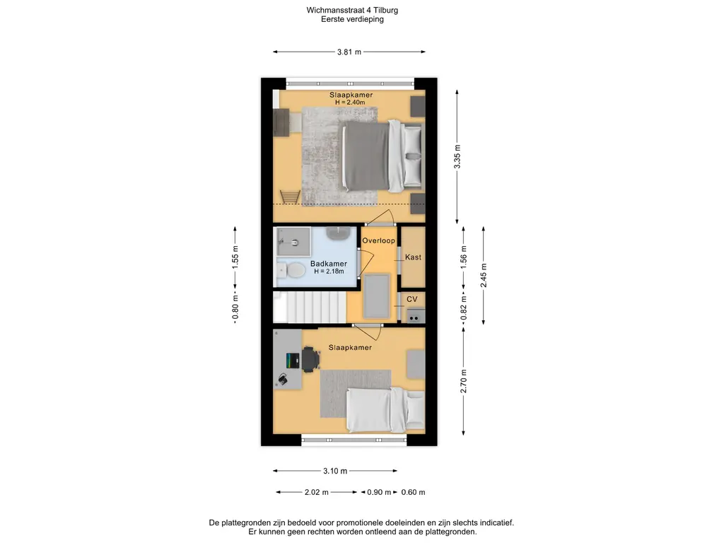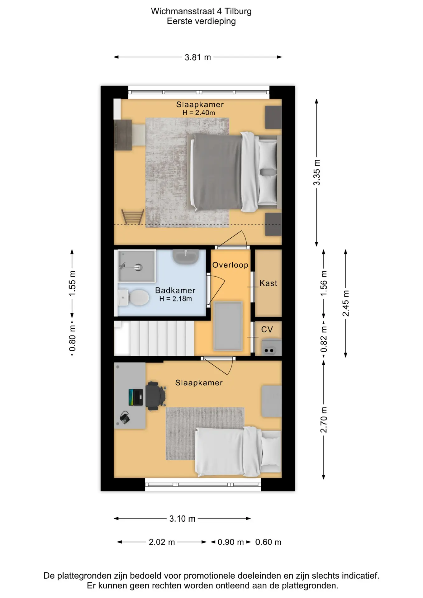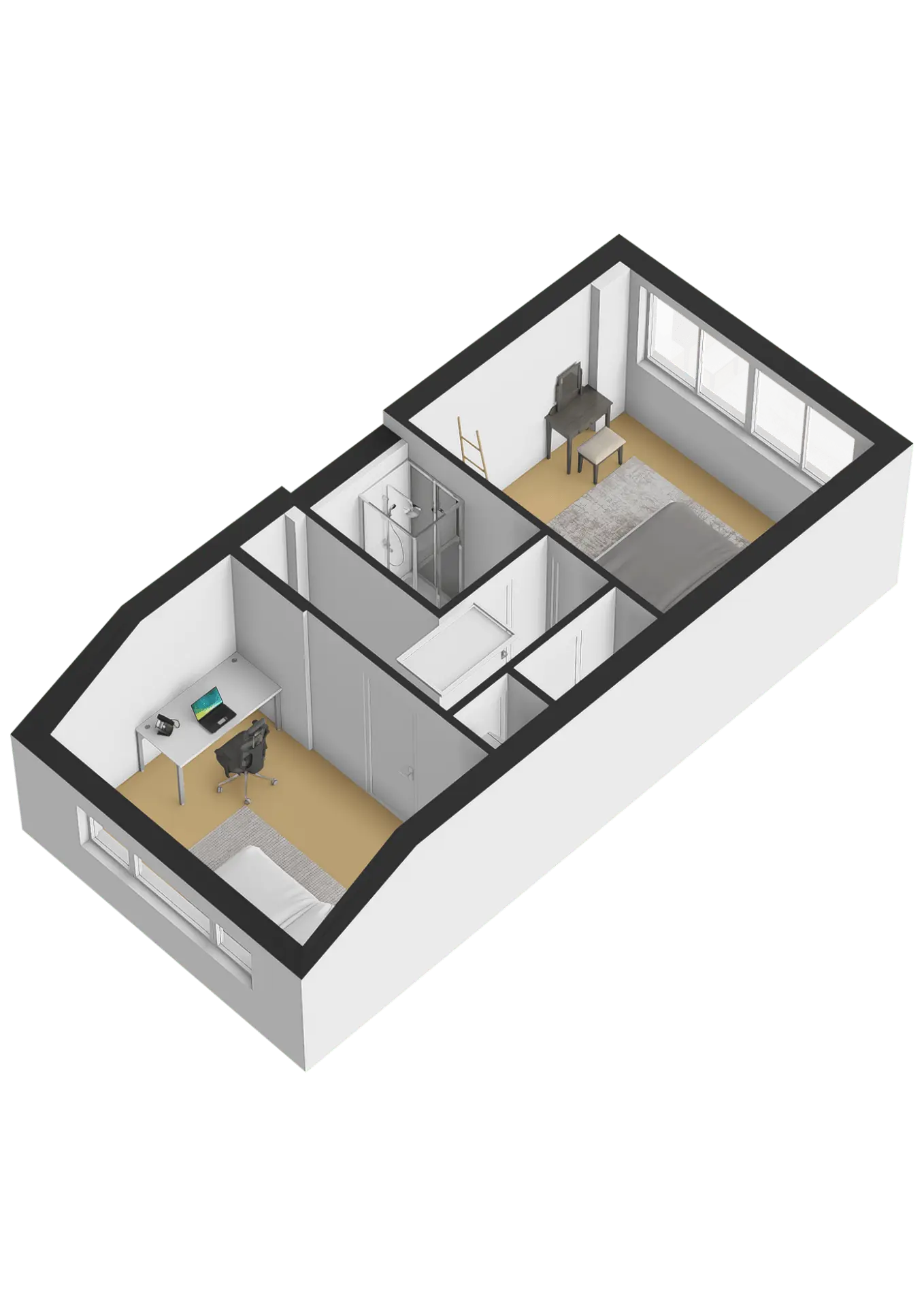 - Twee slaapkamers.
