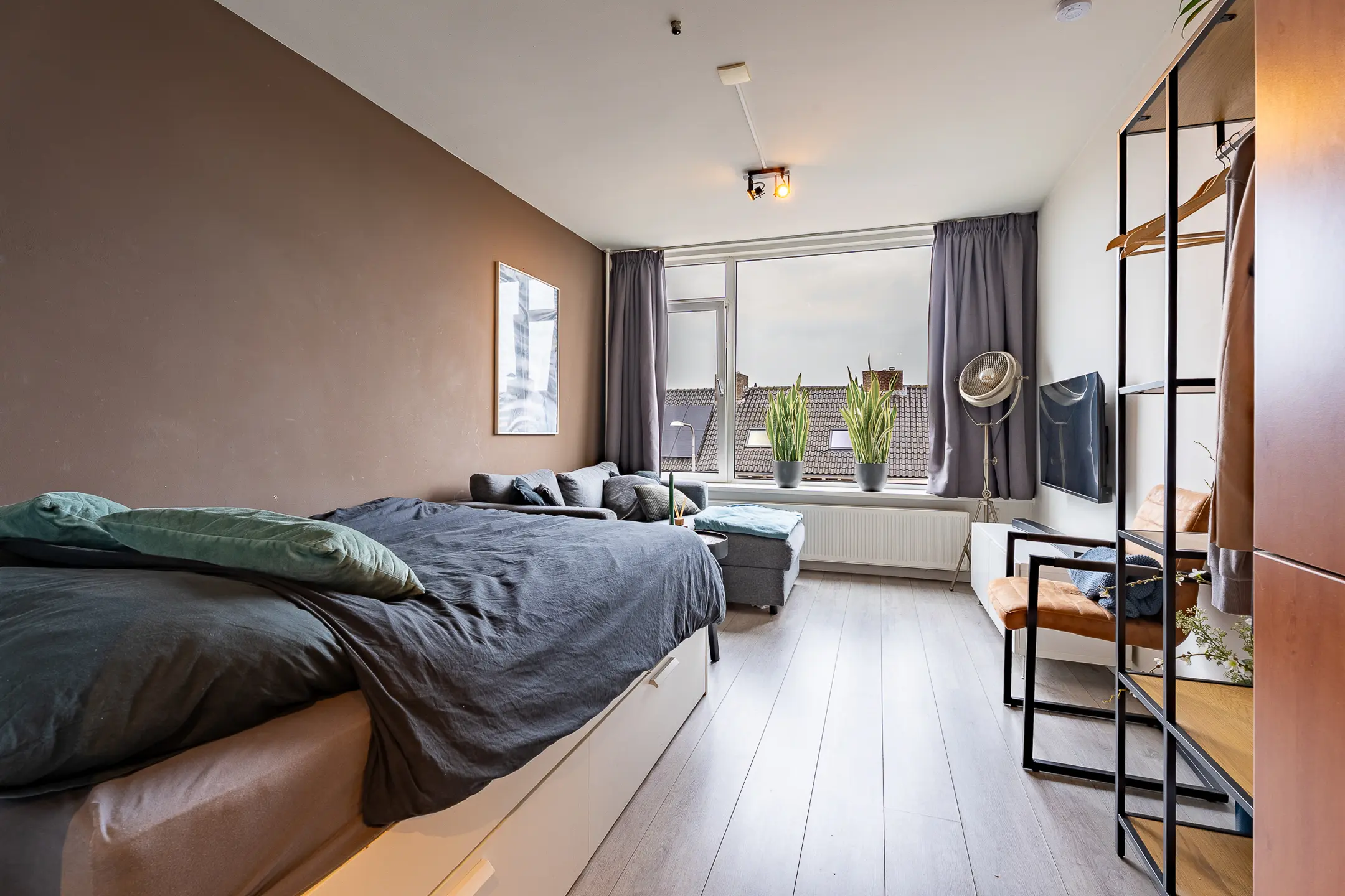 Je eigen plek! Deze studio heeft een mooi uitzicht over de Oerlesestraat en is gelegen als laatste op de galerij. Dit biedt de mogelijkheid voor een extra zitje. Er is een gezamenlijke tuin en fietsenstalling.