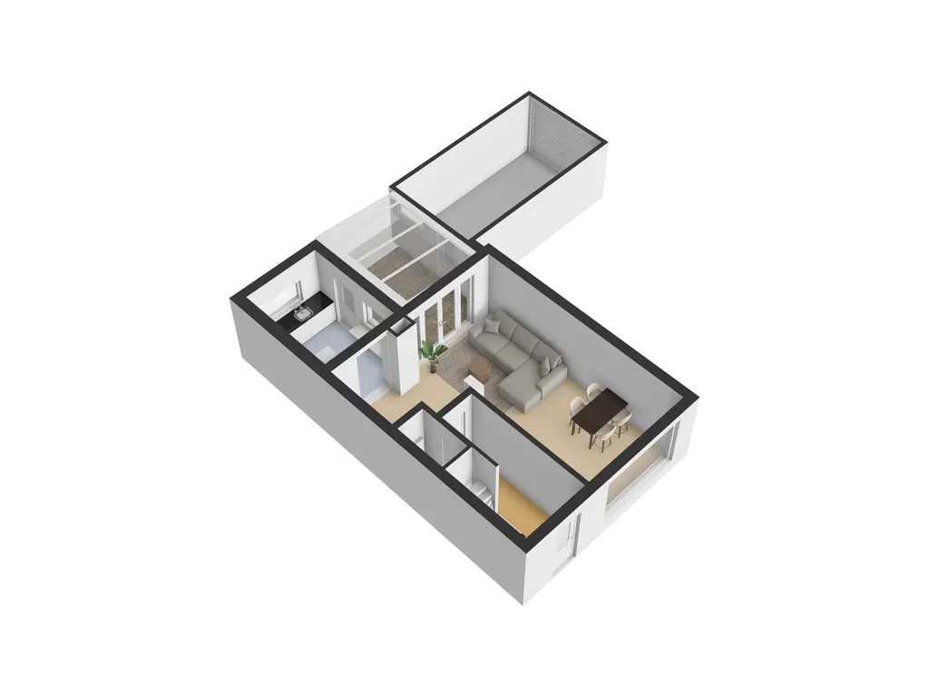 De lichte woonkamer is afgewerkt met een korreltapijt vloer en spachtelputz. Via openslaande tuindeuren is de achtertuin bereikbaar. De woonkamer is makkelijk in te richten met de living voor of achter (zoals nu). De vloer is voorzien van vloerverwarming voor extra comfort.