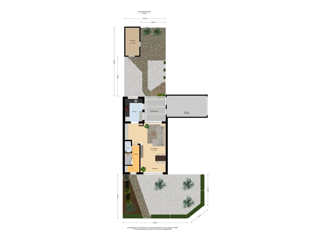 De woning heeft zowel een voor- als achtertuin. De voortuin is afgeschermd met een beukenhaag en biedt ruimte voor containers of fietsen. De achtertuin heeft aan de woning een veranda, waardoor je heerlijk beschut kunt genieten van het buitenleven. De tuin biedt veel privacy en heeft enkele plantenborders en een vrijstaande stenen berging. Vanuit de tuin is de garage bereikbaar, deze is gelegen aan de zijkant van de woning. De garage is voorzien van aansluitingen voor de wasapparatuur en een elektrische roldeur.