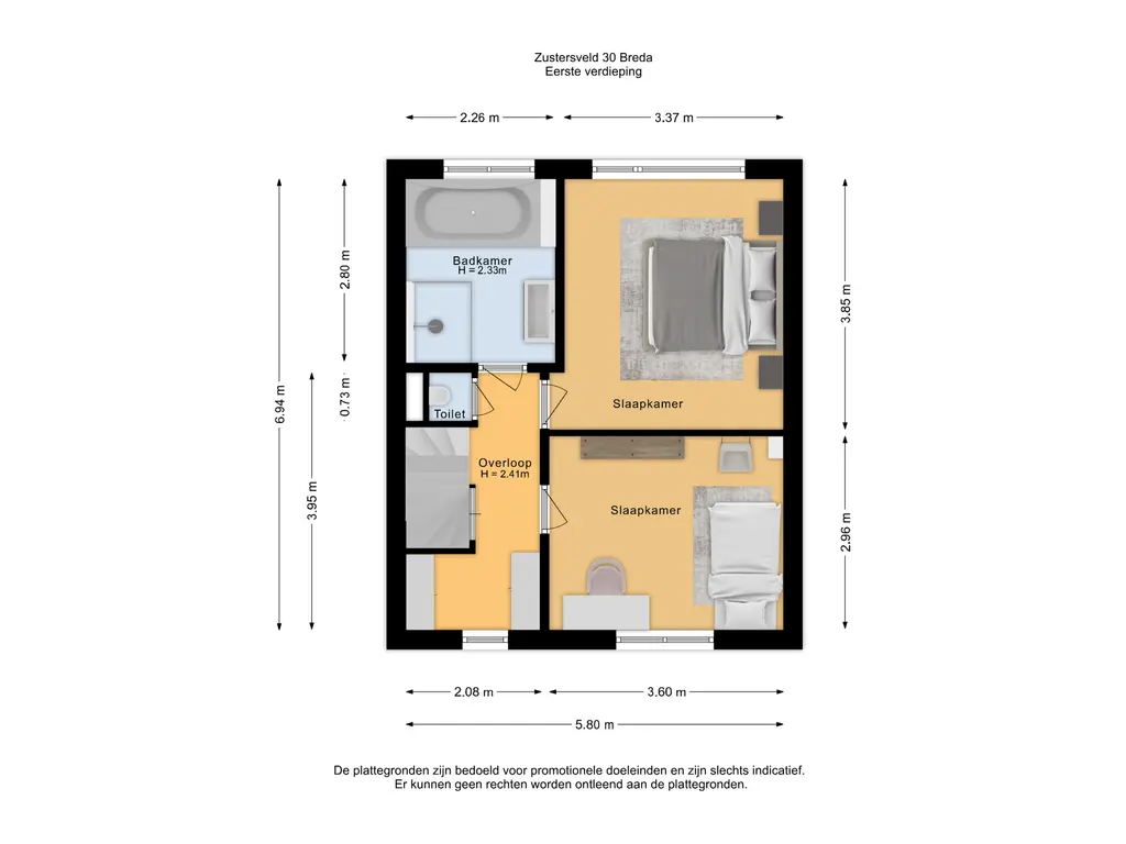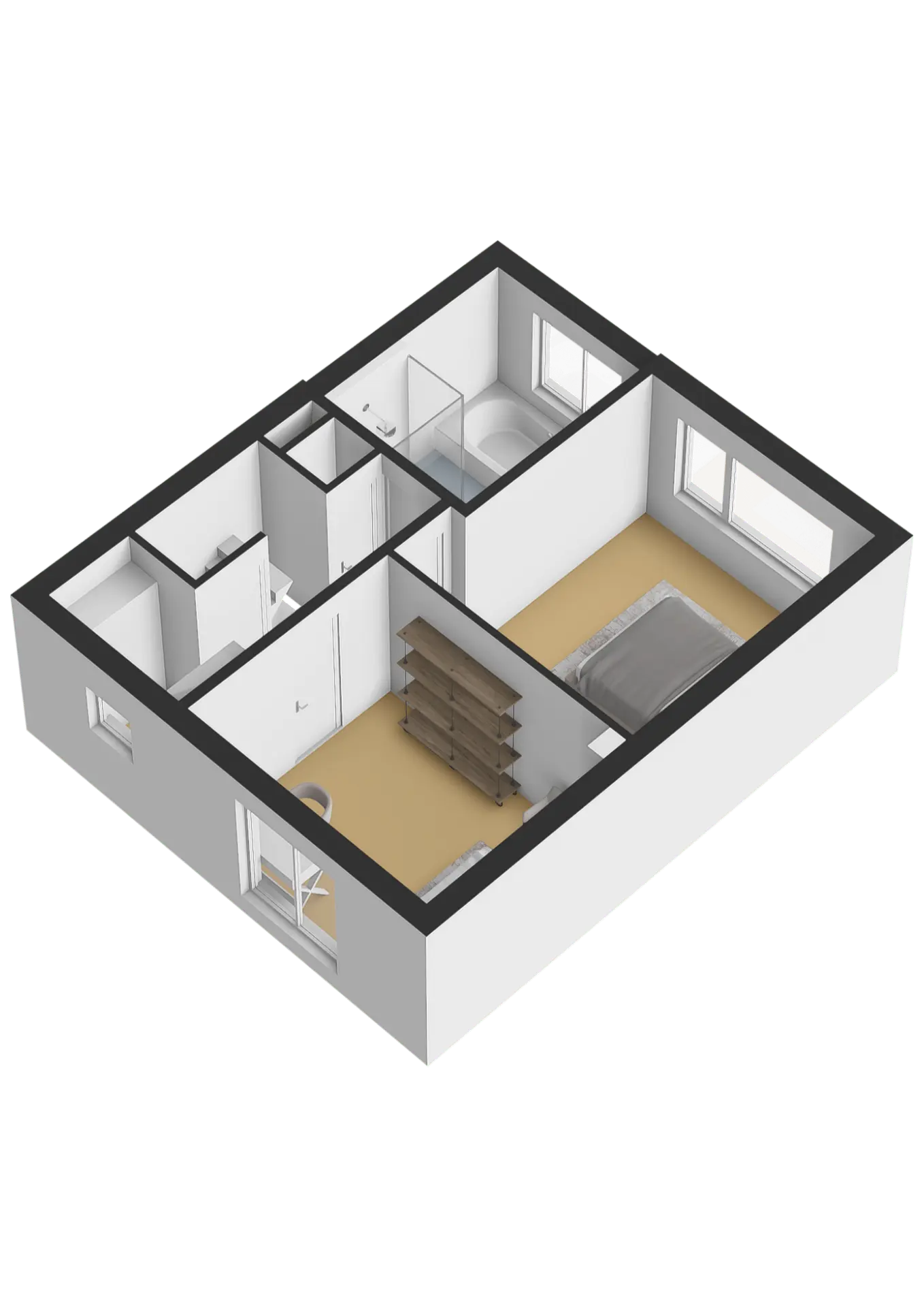 De slaapkamers zijn afgewerkt met tapijt en spachtelputz.