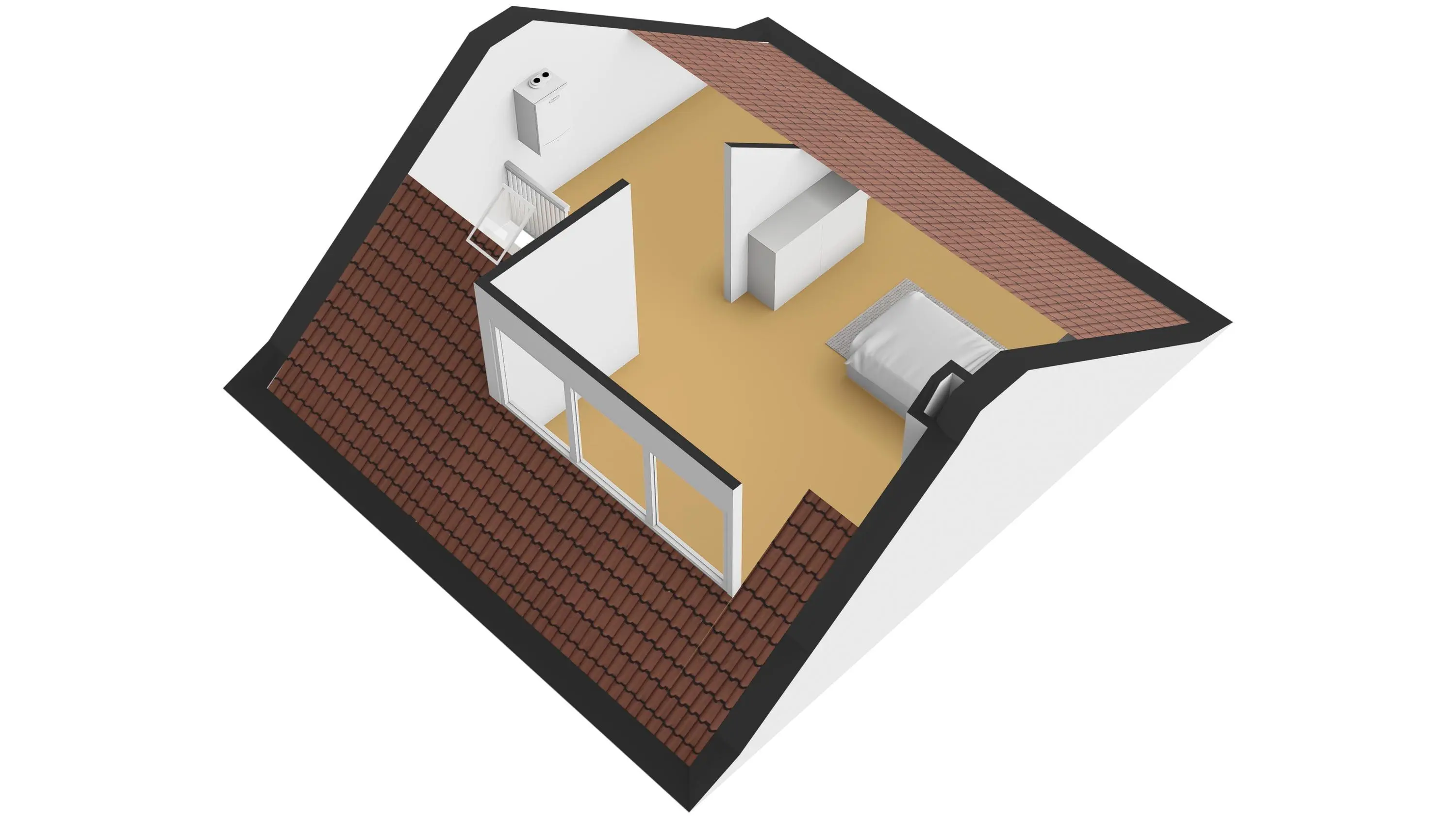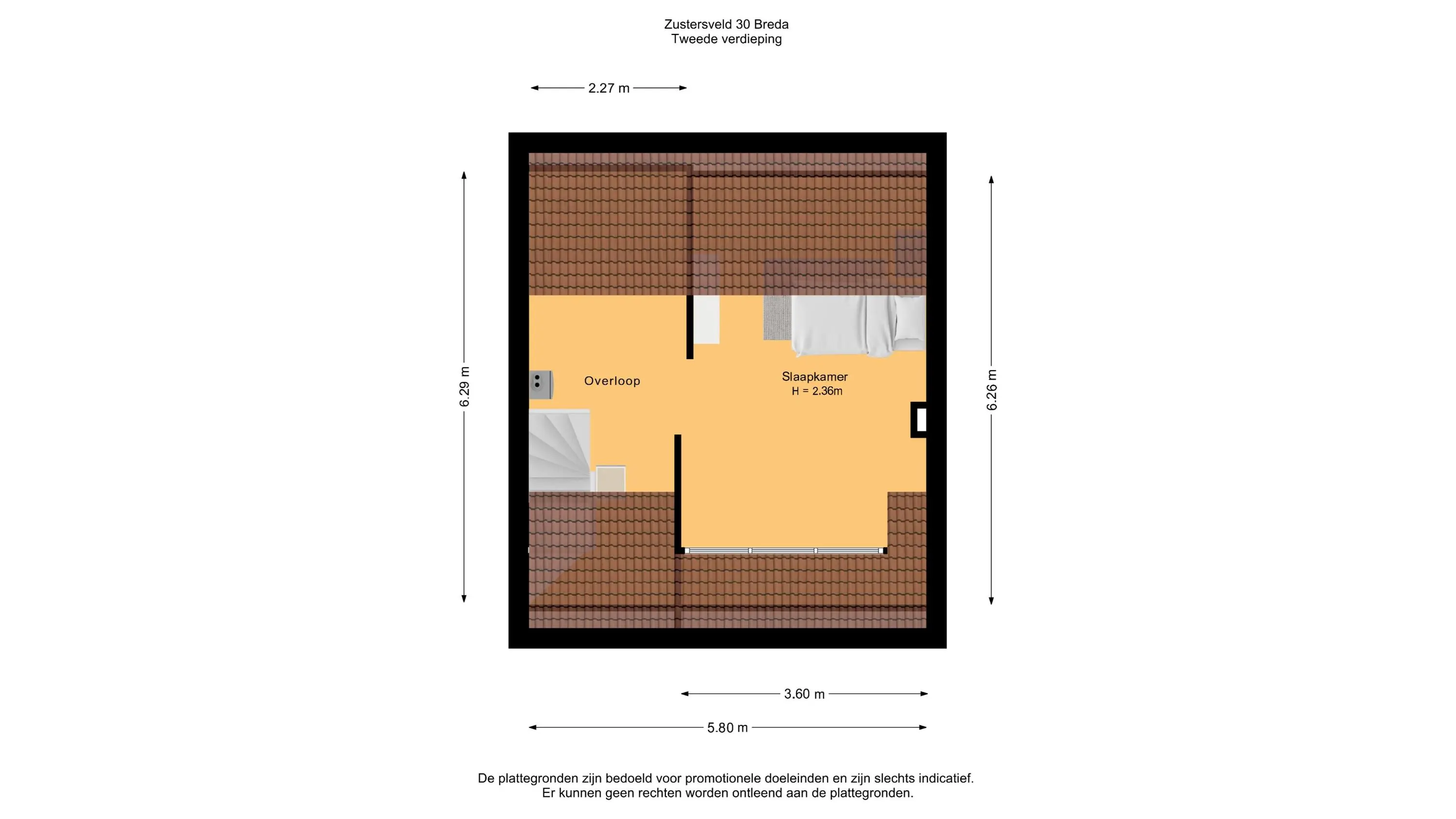 Op de tweede verdieping is een overloop en de derde slaapkamer. Deze slaapkamer is recent vernieuwd en er is een grote dakkapel aan de voorzijde geplaatst. De vloer is afgewerkt met tapijt en de wanden zijn gestuct.
